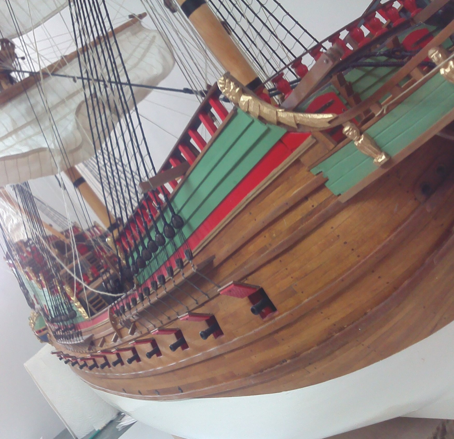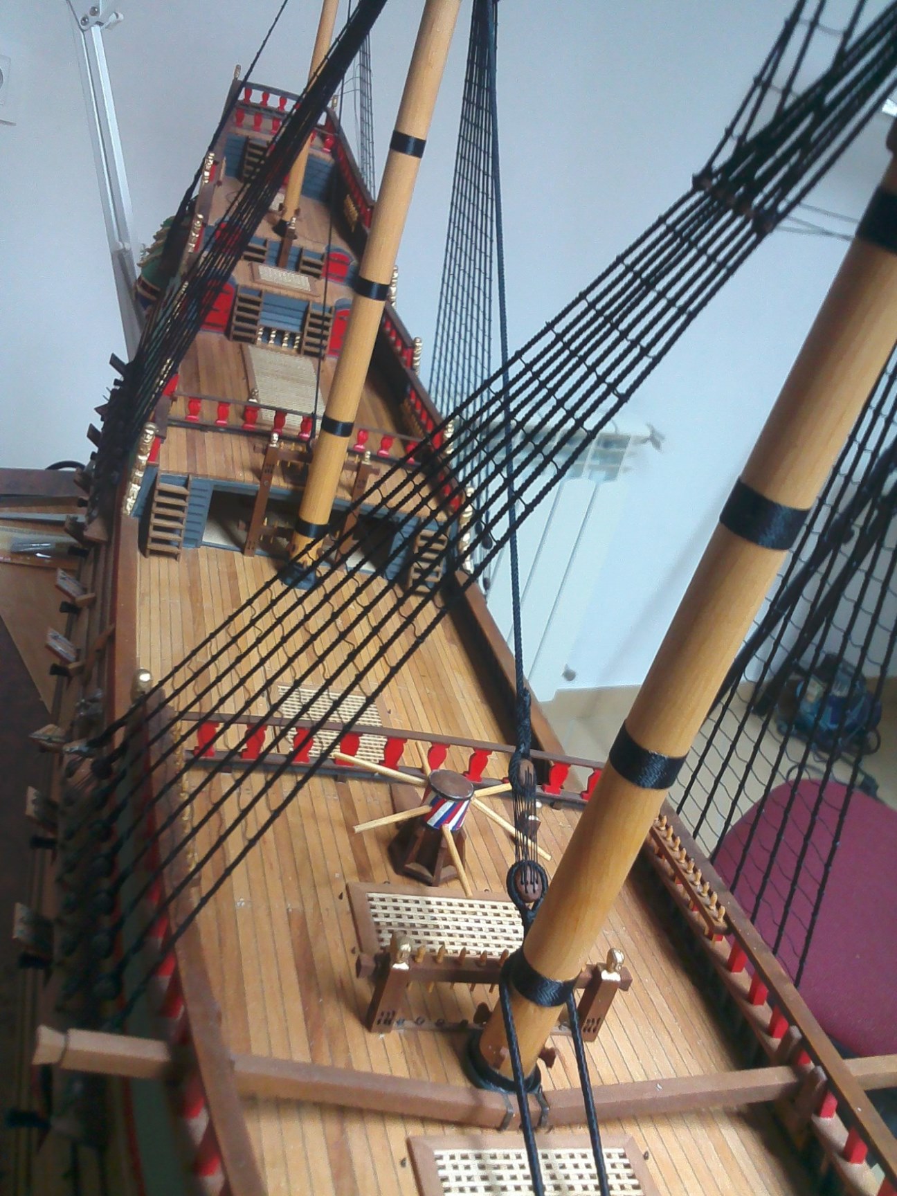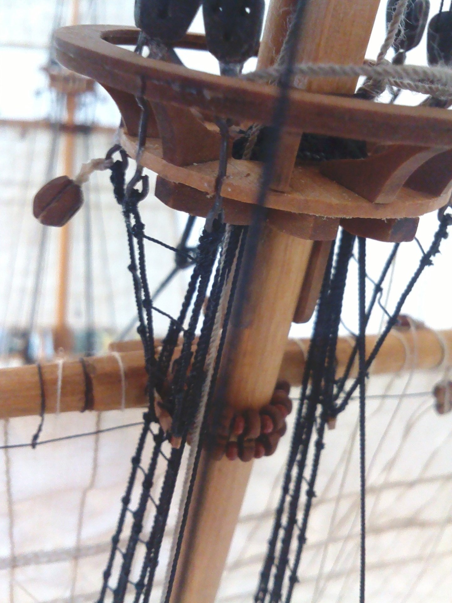 Malutka aktualizacja tematu. Wyblinki na wantach kolumnowych wykonane (ponad 1200 węzełków) bagatela :) . Ale jak widać, żaglowce z pierwszej połowy XVII wieku obficie obdarzano wantami :D :