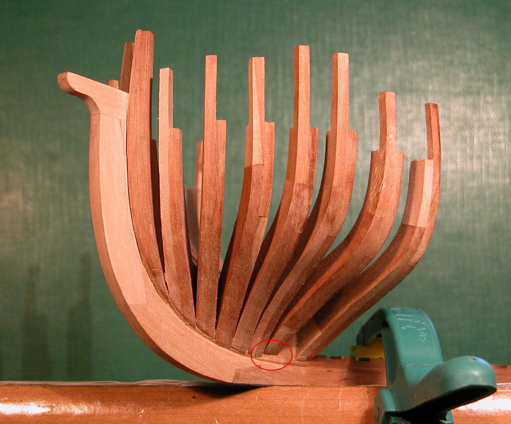 Drodzy koledzy. Może nie wyglądam, ale zapewniam, że tak bezmyślno-głupi to ja nie jestem. Pisząc: "...zacząłem od wycięcia elementów wręg, sklejenia ich i zeszlifowania do zadanego kształtu..." miałem na myśli również zeszlifowanie skosów. Ale masz Kaziu rację - na zdjęciu tego nie widać. Powinienem wybrać do fotografii wręgi umiejscowione blisko dziobu lub rufy (tam przecież skos jest największy) i zrobić zdjęcie pod innym kątem.