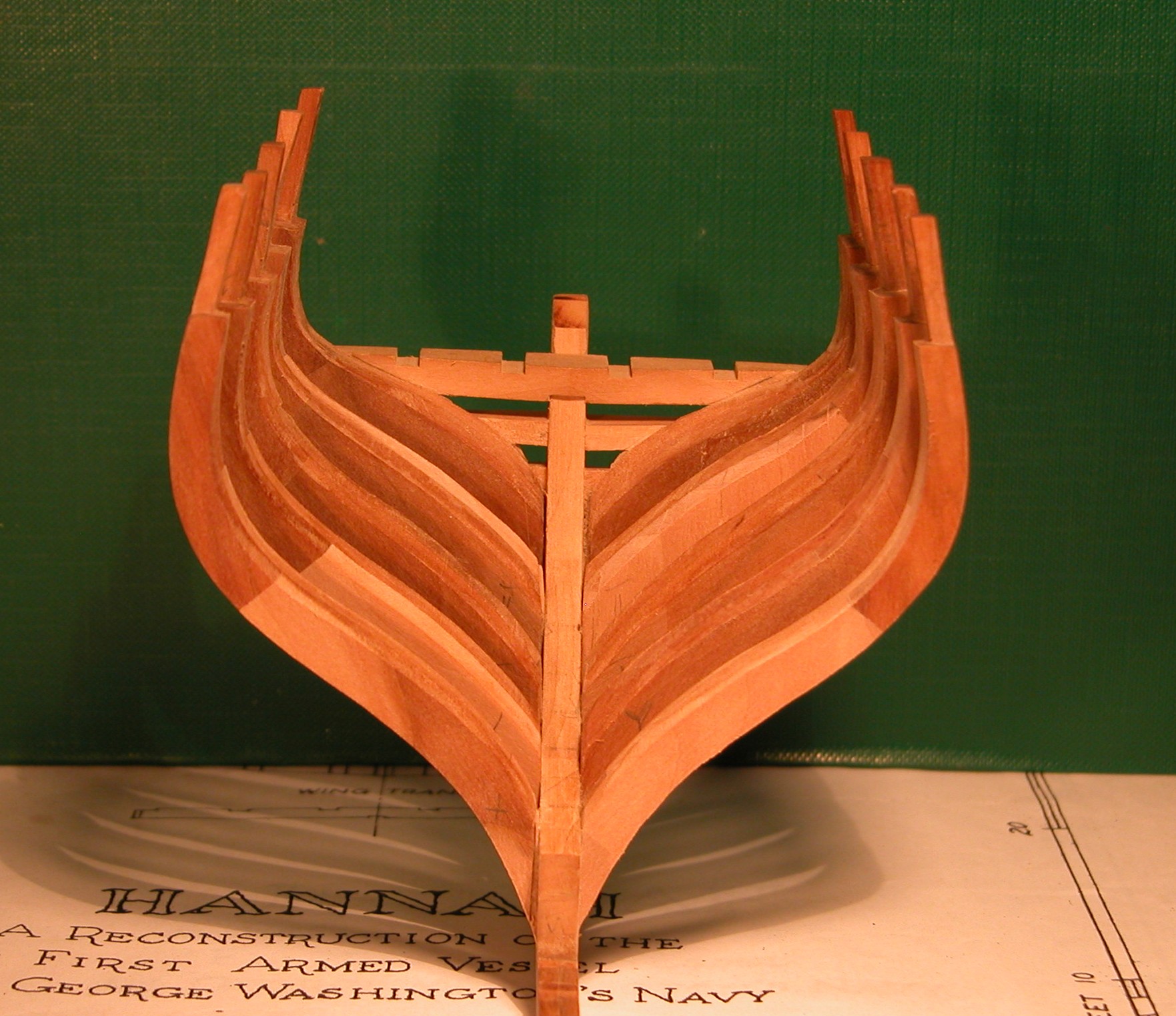 Coby zupełnie nie zgnuśnieć, postanowiłem w międzyczasie zacząć nowy projekt. Od jakiegoś już czasu przymierzałem się mentalnie do „szkieletora”, ale chciałem zacząć od czegoś możliwie prostego. Po długich poszukiwaniach zdecydowałem się wreszcie na Hannah – mały szkuner z drugiej połowy XVIII w. o długości ok. 70 stóp (21 m) – pierwszy okręt floty wojennej Waszyngtona i przynabyłem jego plany. Wybór nie był chyba najszczęśliwszy, bo okazały się one bardzo uproszczone (brak wielu szczegółów, np. nie zaznaczono w ogóle poszycia wewnętrznego) i na dokładkę (jak mnie uprzedził Mirek) są one obarczone błędami, ale trudno, od czegoś trzeba zacząć.