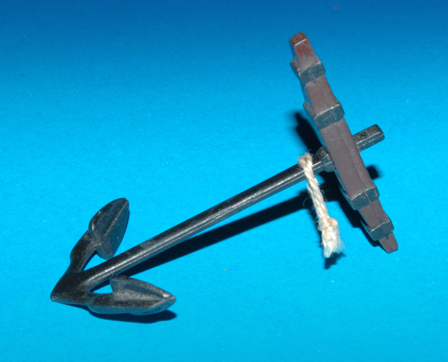 Kotwicę poczerniłem (naniosłem pędzelkiem moją Oksyblack - oksydę na zimno, na kilka minut). Po umyciu wodą z mydłem i wytarciu czerń się trzyma, i ma lekki brązowy odcień.