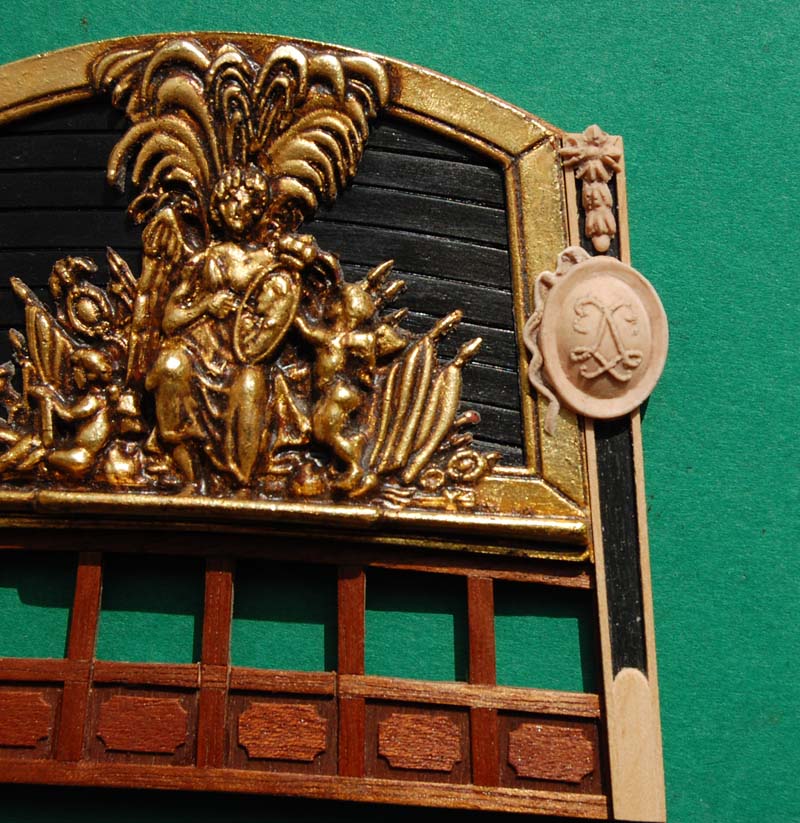 Ciekaw byłem, czy da radę zbudować model od... ozdoby pawęży czyli od rufy, czyli z d... strony :D. Teraz z perspektywy czterech miesięcy (model budowałem od pocz. kwietnia do lipca ub.r) mogę z całą odpowiedzialnością stwierdzić, że da radę, ale... .