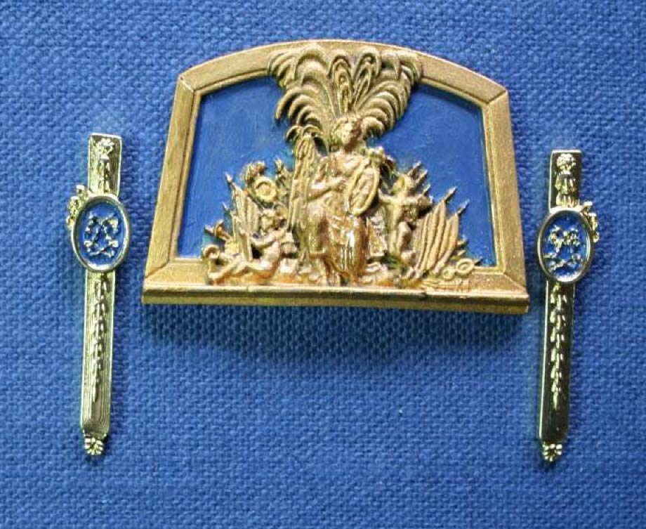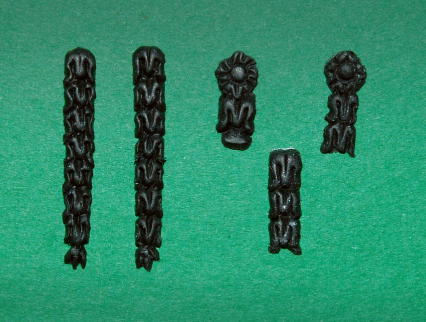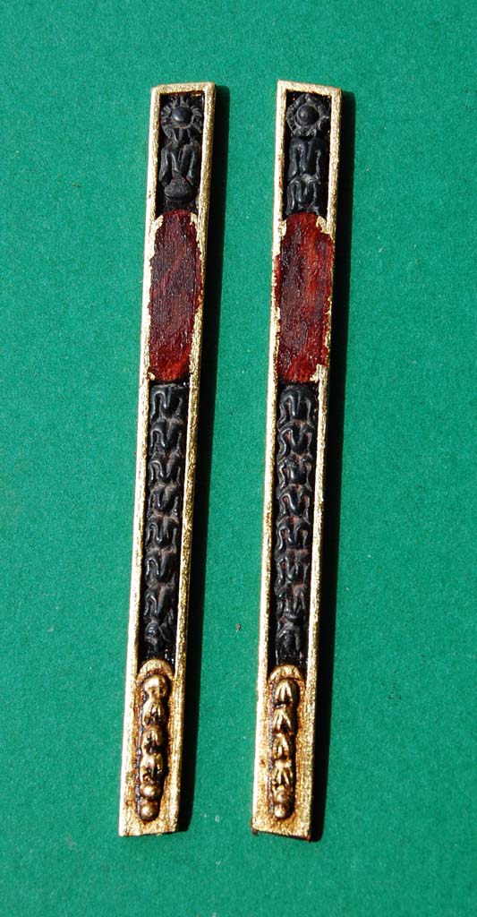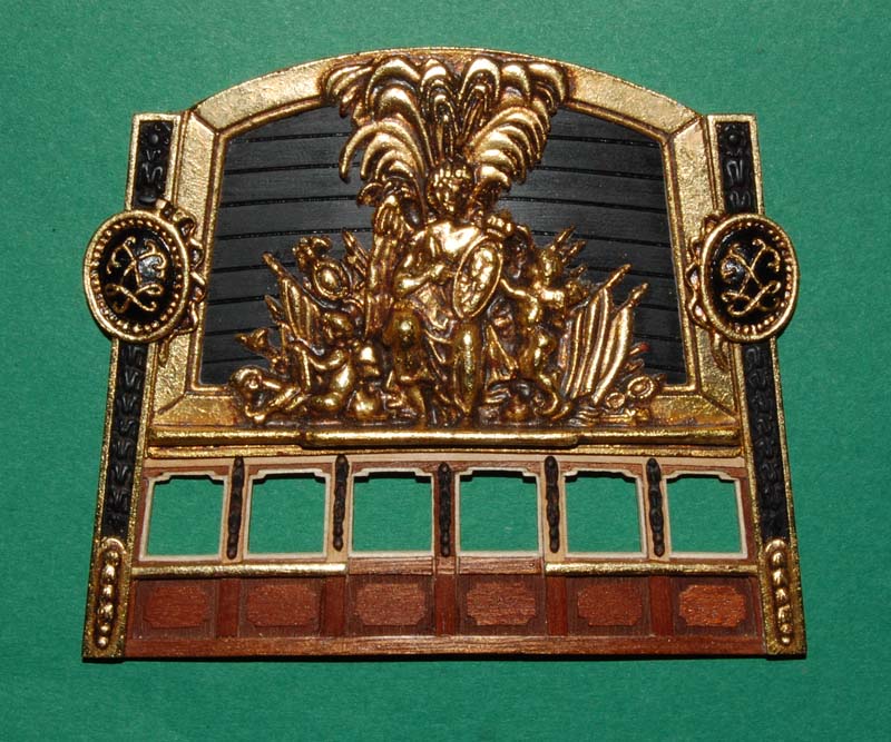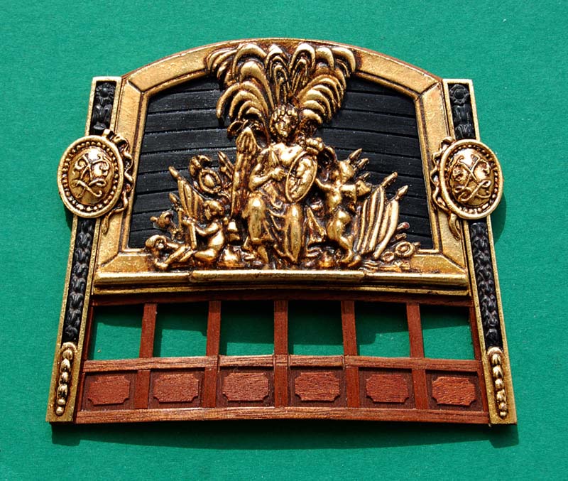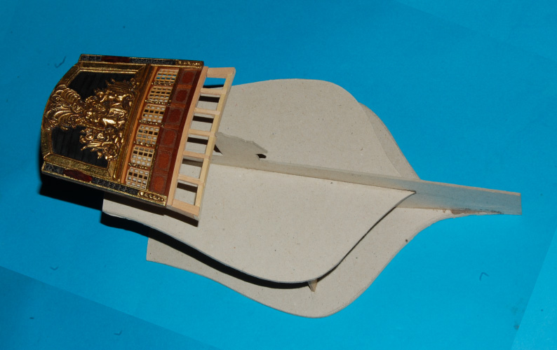 Listwy z ornamentami przykleiłem do pawęży. I jeszcze jedna przymiarka medalionów: