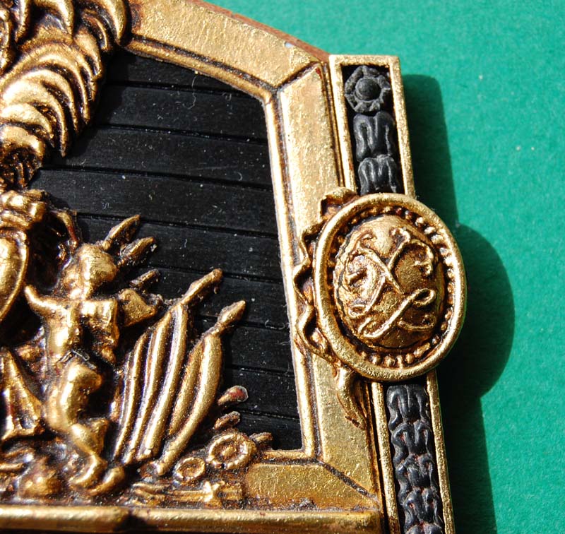 Medaliony będą złocone, ale przełamuję się nad czarnym tłem, więc zrobiłem próbkę czy dam radę pomalować takie maleństwo ;-)
