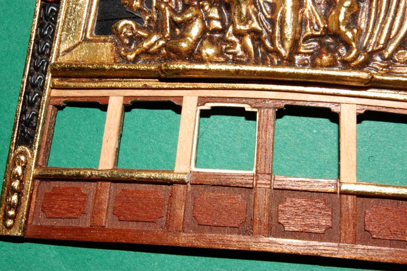 Wkleiłem pozostałe "ramiaki" okien i przymiarka ornamencików (2 mm szer.) na szpongi.