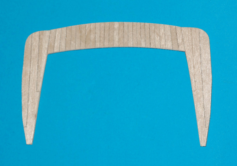 Najpierw łuki zrobiłem z okrąglaka z otworem, ale w trakcie klejenia kropelką CA łuki zciemniały - to samo by się stało po lakierowaniu - pod malowanie nie ma znaczenia, ale chce mieć w drewnie, więc trzeba wziąć drewno wzdłuż słoi, a nie w poprzek.