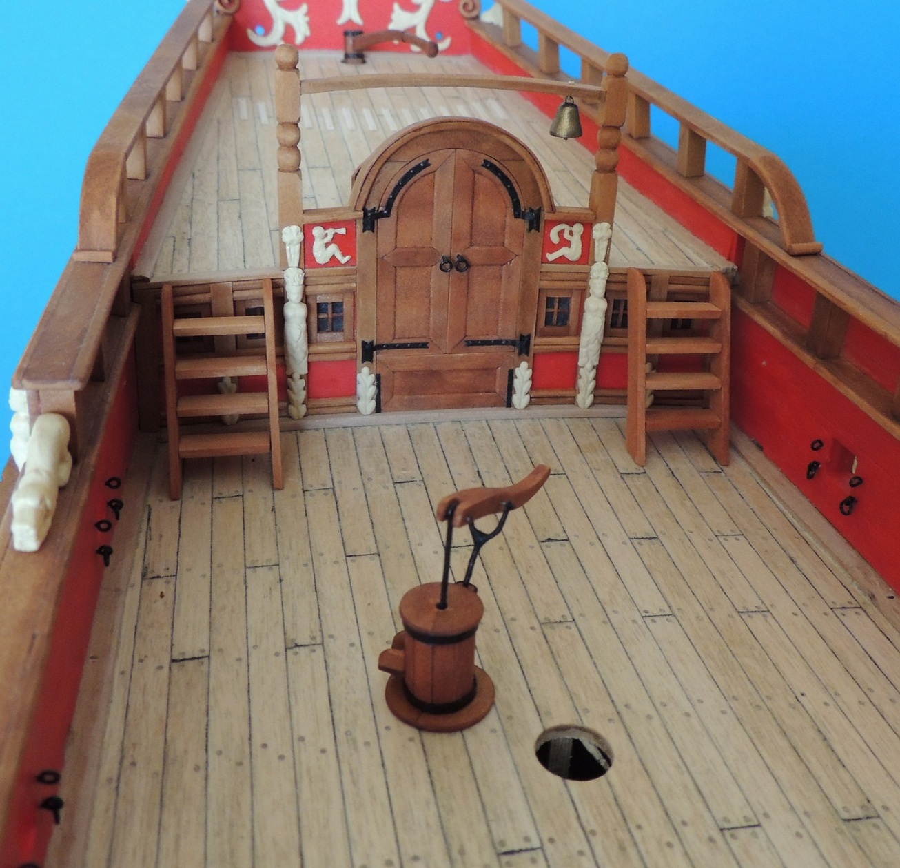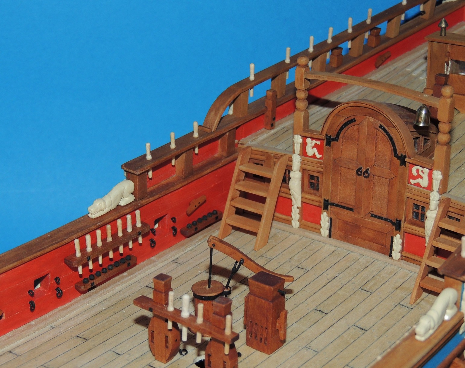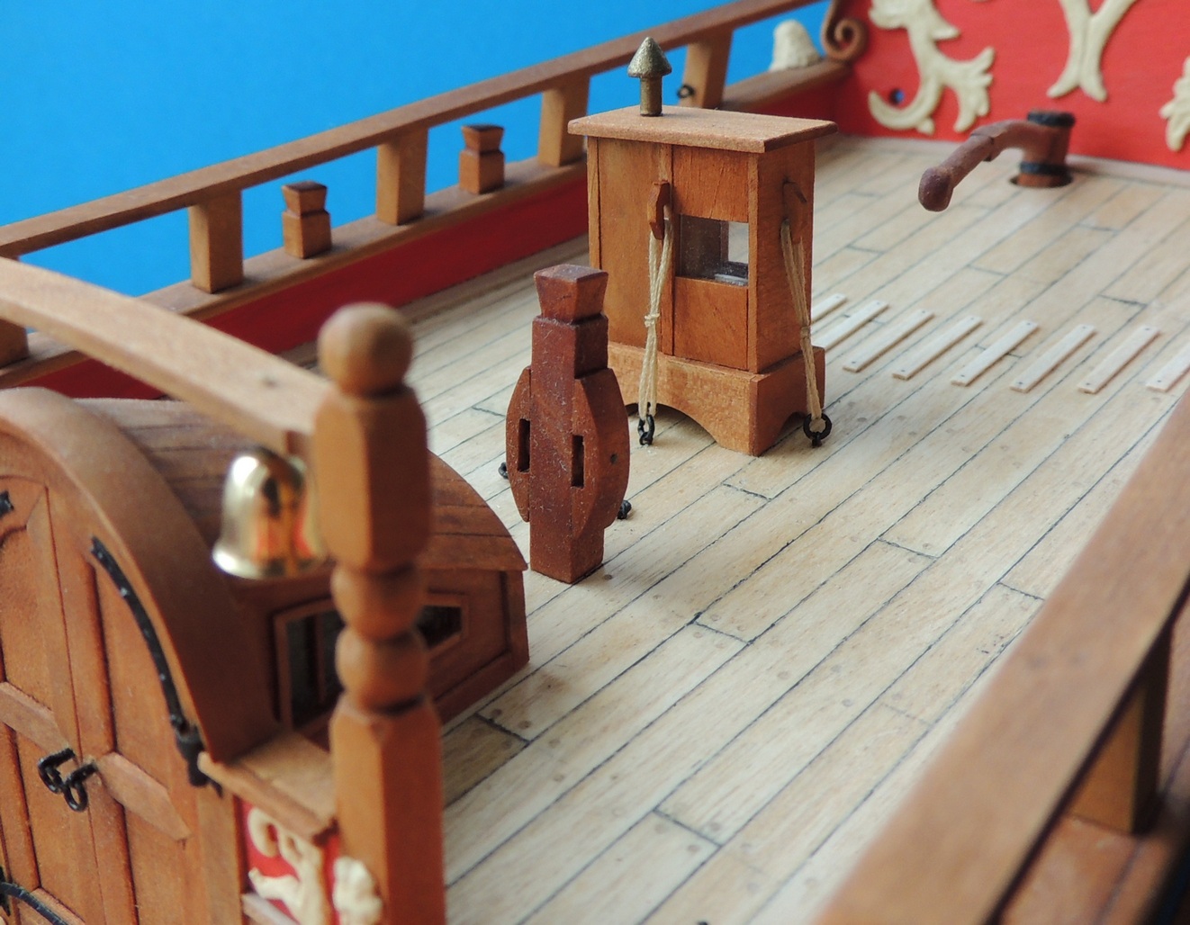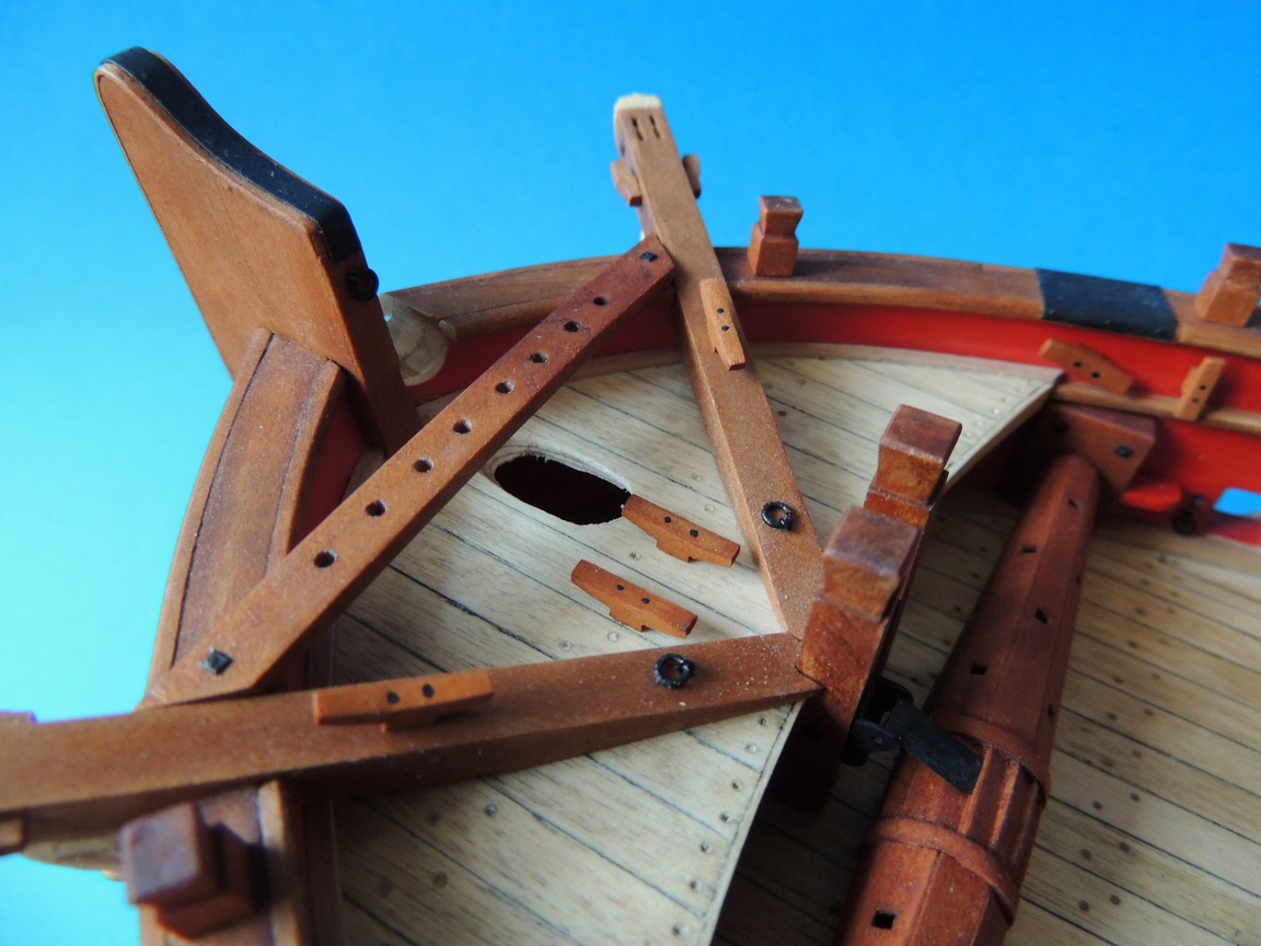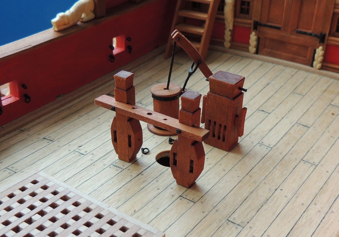 Jedziemy z tematem dalej.Przybyły kilka pachołków na burtach i kilka okuć na pokładach. Teraz pracuję nad pachołkami przymasztowymi. Ten główny przy grotmaszcie już gotowy tylko ta imitacja rolek trochę słaba, ale jakoś nigdy ładnie mi to nie wychodziło.