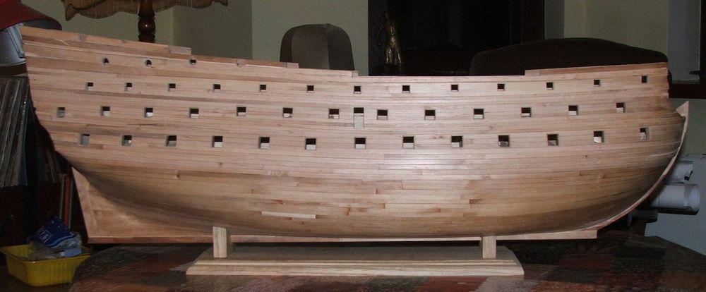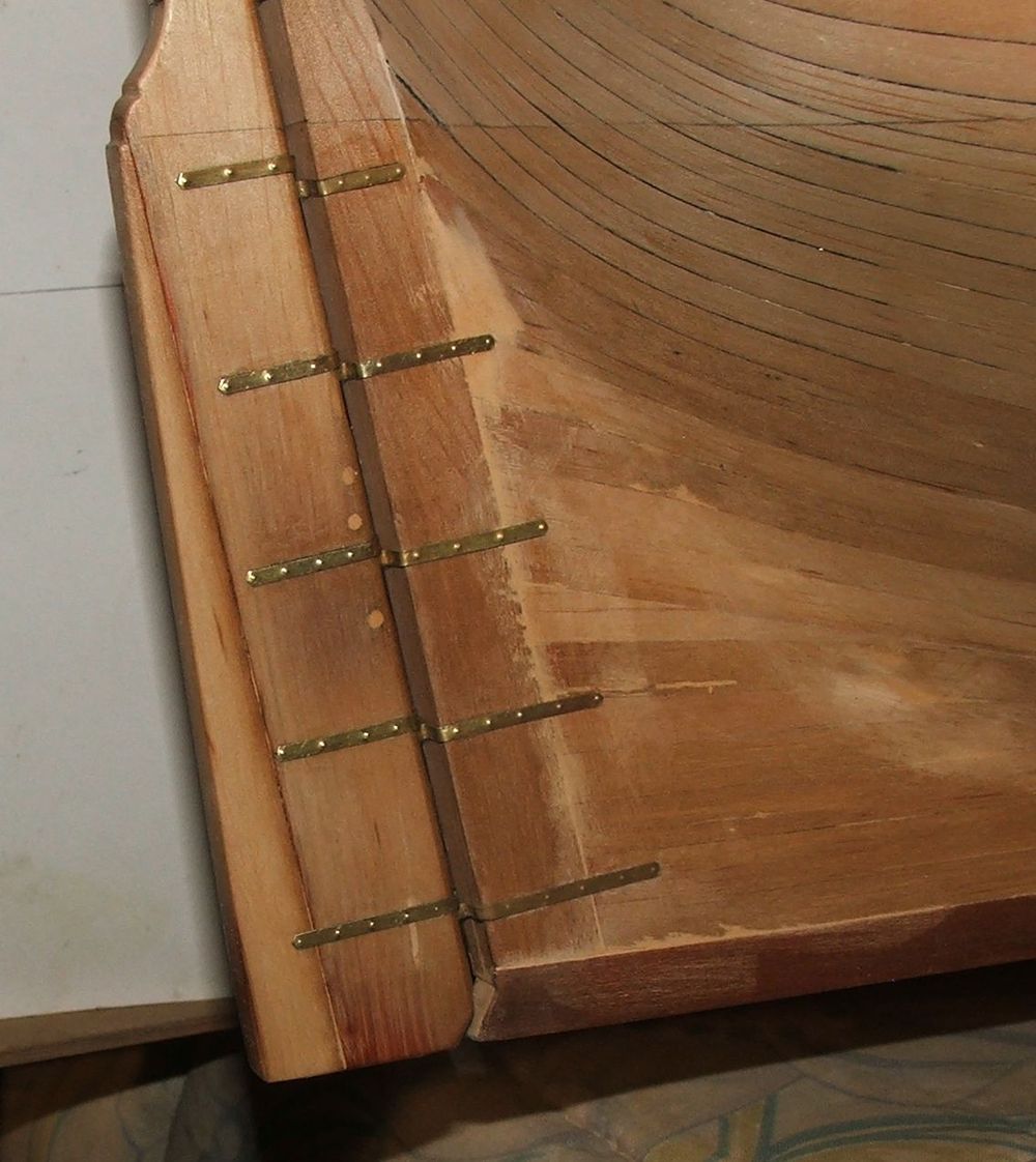 Poszywanie i szlifowanie zakończone.Obróbka 90 otworów okazała się nad wyraz uciążliwa .Teraz ster i stewa dziobowa i niestety malowanie czym z pewnością zasmucę spore grono kolegów.Lubię kiedy model jest w pełnych barwach.Prace trochę trwają z braku czasu.R