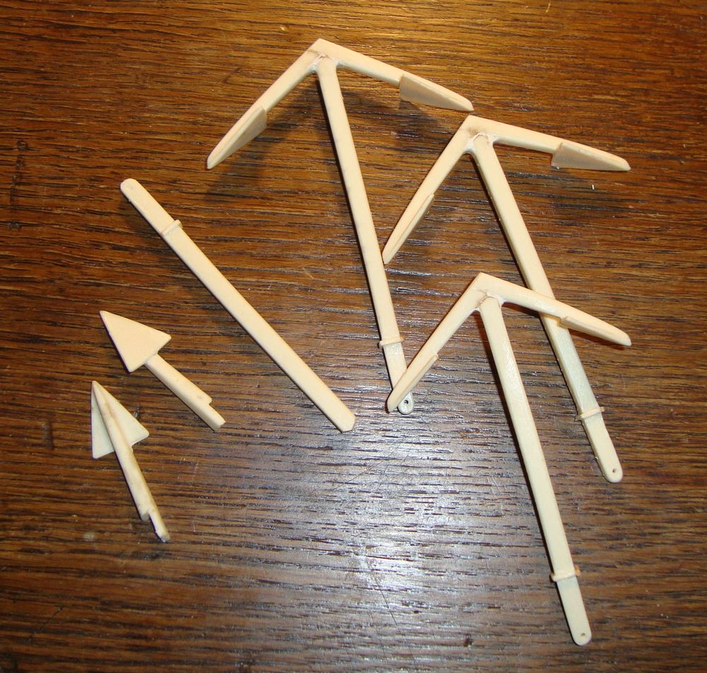 Jako odskocznia od artylerii wykonałem kotwice .Odlewy z formy .Jedno ramie i trzpień .Potem modyfikowałem dopasowując do wielkości .I szybciej i dokładniej .Po pomalowaniu nie widać różnicy .R