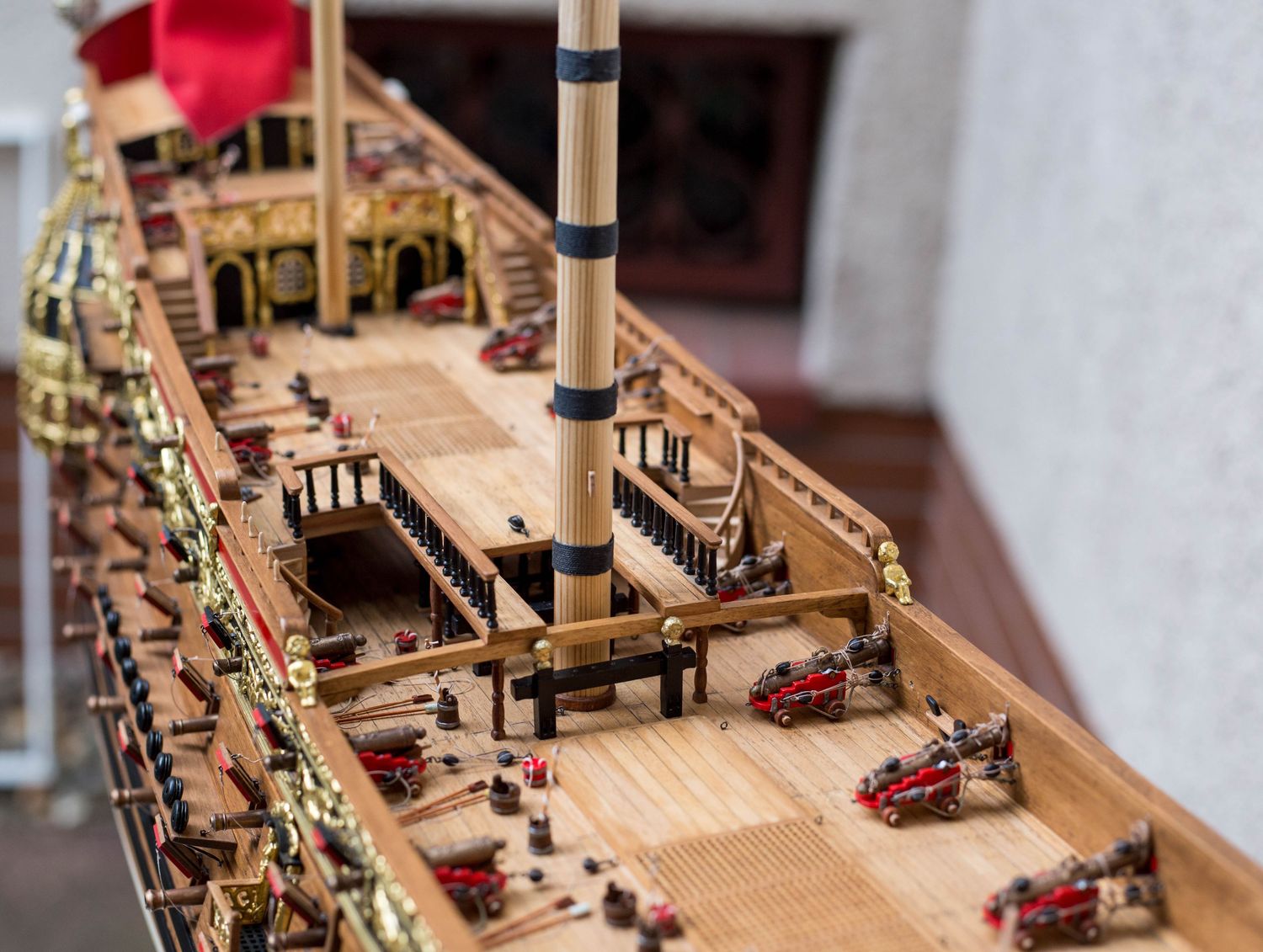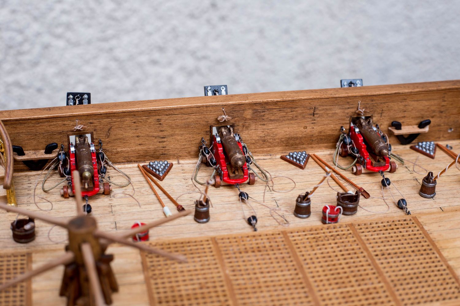 Witam .Powoli kończę uzbrajać Karolinę .Lufy jak i lawety odlane z żywicy ,potem malowane i patynowane .Jeszcze do uzbrojenia górne pokłady .Pozdr.R