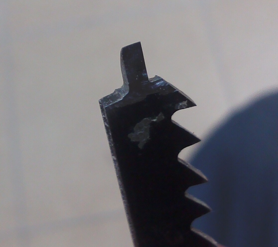 Kwadratowe otwory we wrzecionie wyciąłem takim oto narzędziem, wykonanym ze starego brzeszczotu od wyrzynarki: