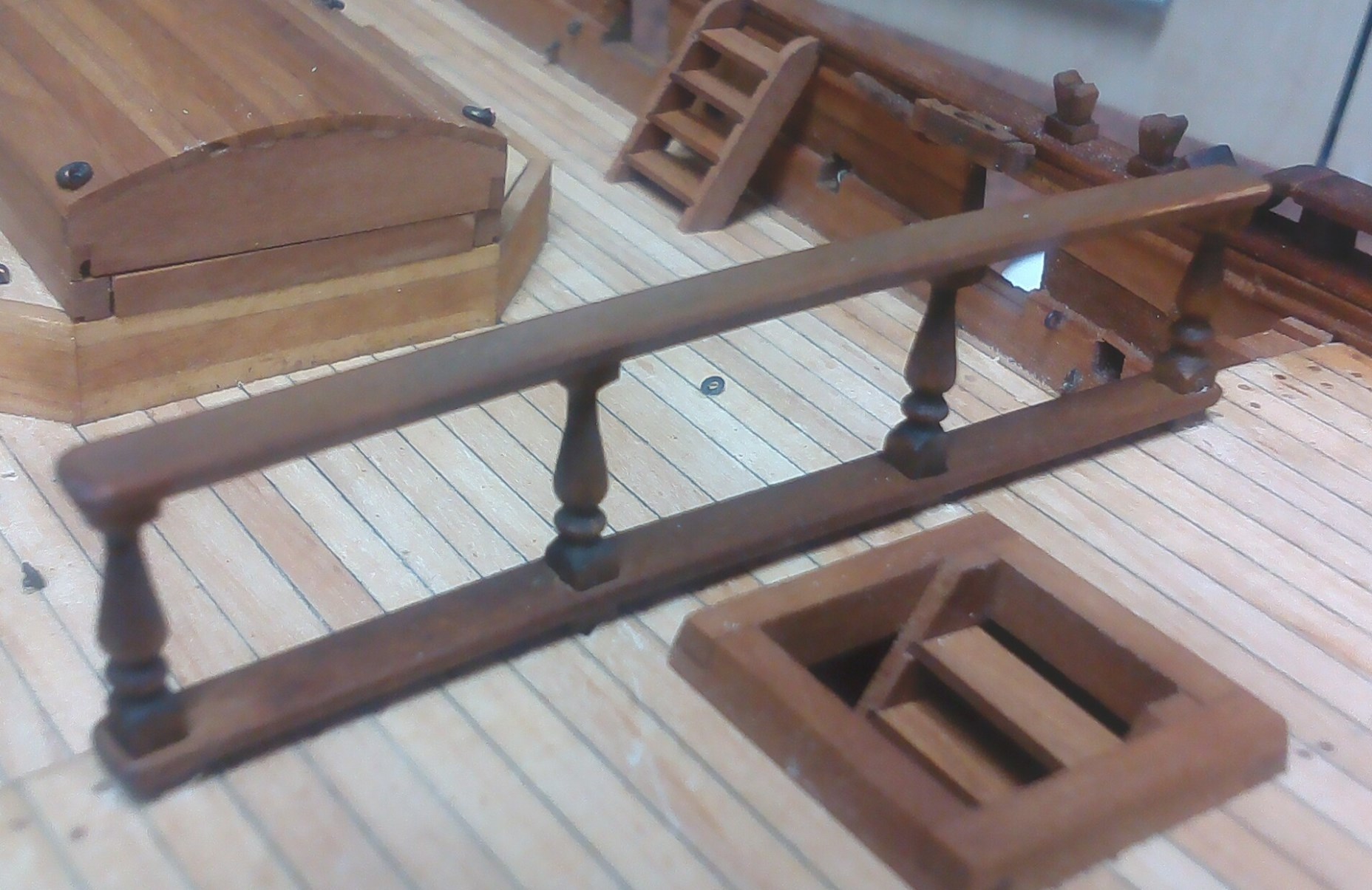 Przybyło całkiem sporo drobnych detali; pachoły, knagi, bloki itp.: