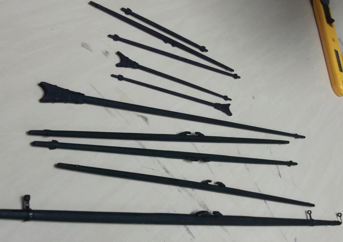 A teraz czas na stengi i tu już stopień komplikacji nieco większy. Mam kilka niejasności co do przebiegu niektórych lin. Studiuję zdjęcia i dostępną literaturę.