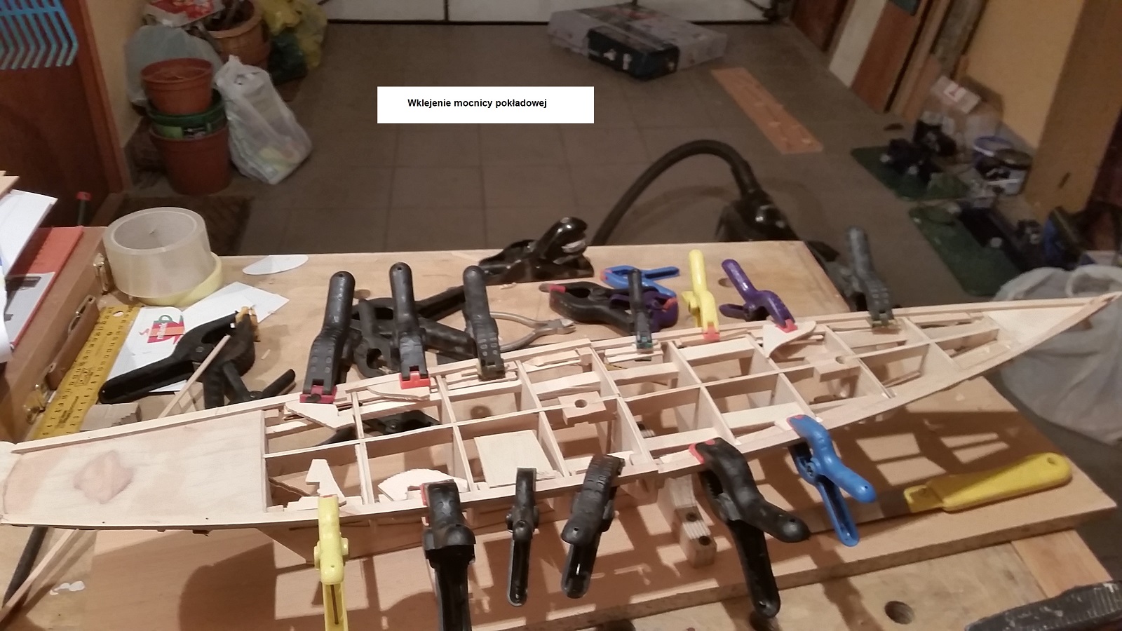 Do klejenia stosuję: Patex wodoodporny Expres, Cjanoakryle: rzadki, średni, gęsty. Patex Extra mocny, kontaktowy (Butapren), Epoksyd 5min. Szpachlówka - poliestrowa, samochodowa. Drewno - olcha, mahoń-różne gatunki, buk. Olinowanie kręcę sam na swojej konstrukcji ropewalku „takim ło” Fot-19.