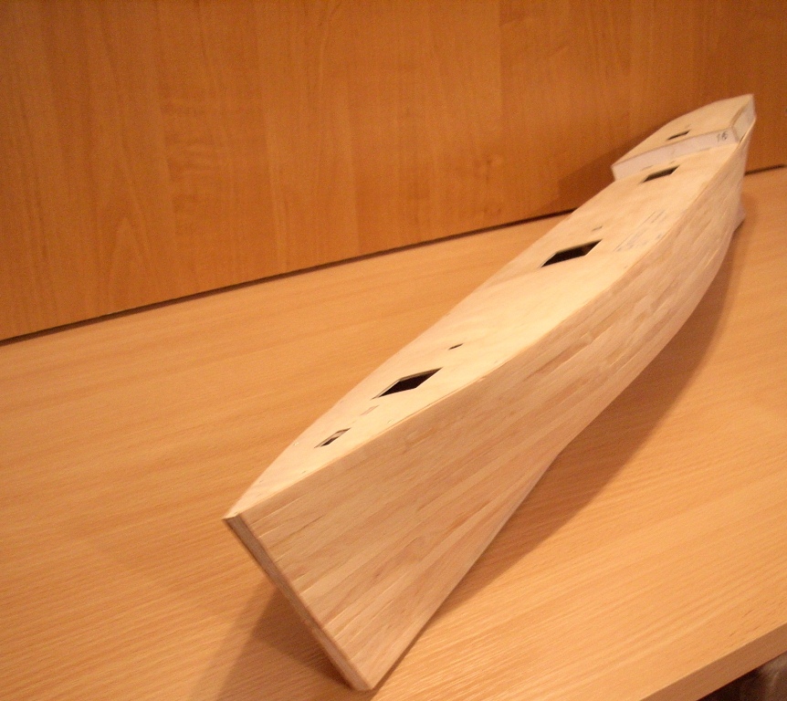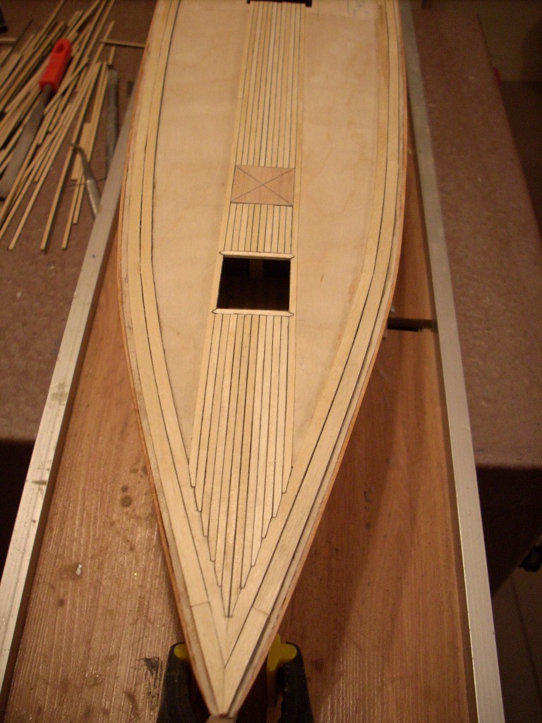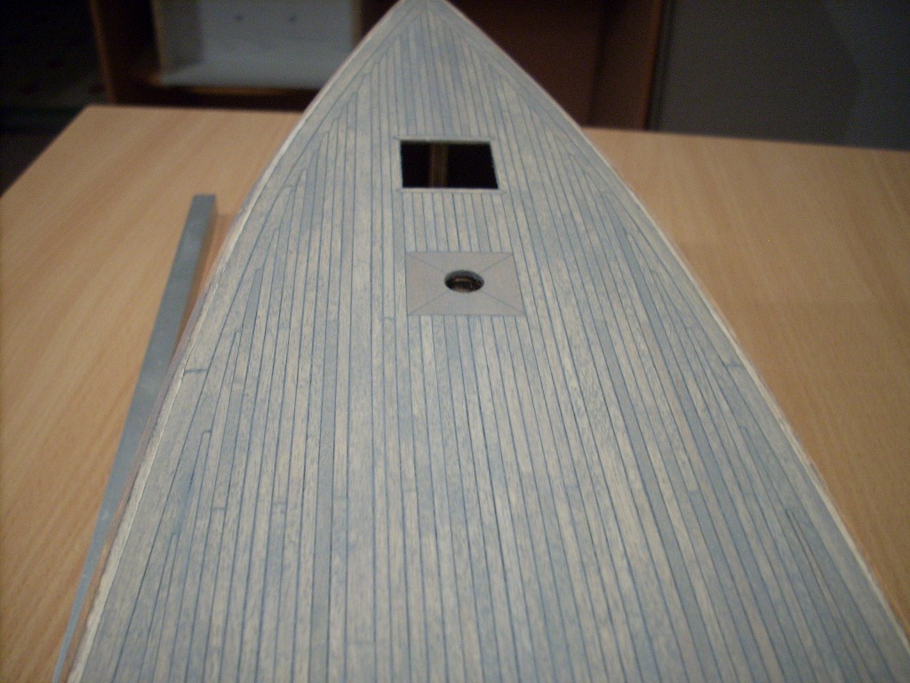 Wykonałem szkielet ze sklejki 5m i położyłem poszycie z listewek z olchy grubości 2mm na razie wstępnie oszlifowane z użyciem caponu by zalepić wszelkie szpary między listewkami jeżeli takie się gdzieś pojawiły zostało teraz doszlifować i dopieścić całość i przygotować do malowania ale wcześniej położę pokłady ,cześć poniżej linii wodnej oczywiście miedziowana. Model będzie malowany jak oryginał czyli w kolorze czarno białym