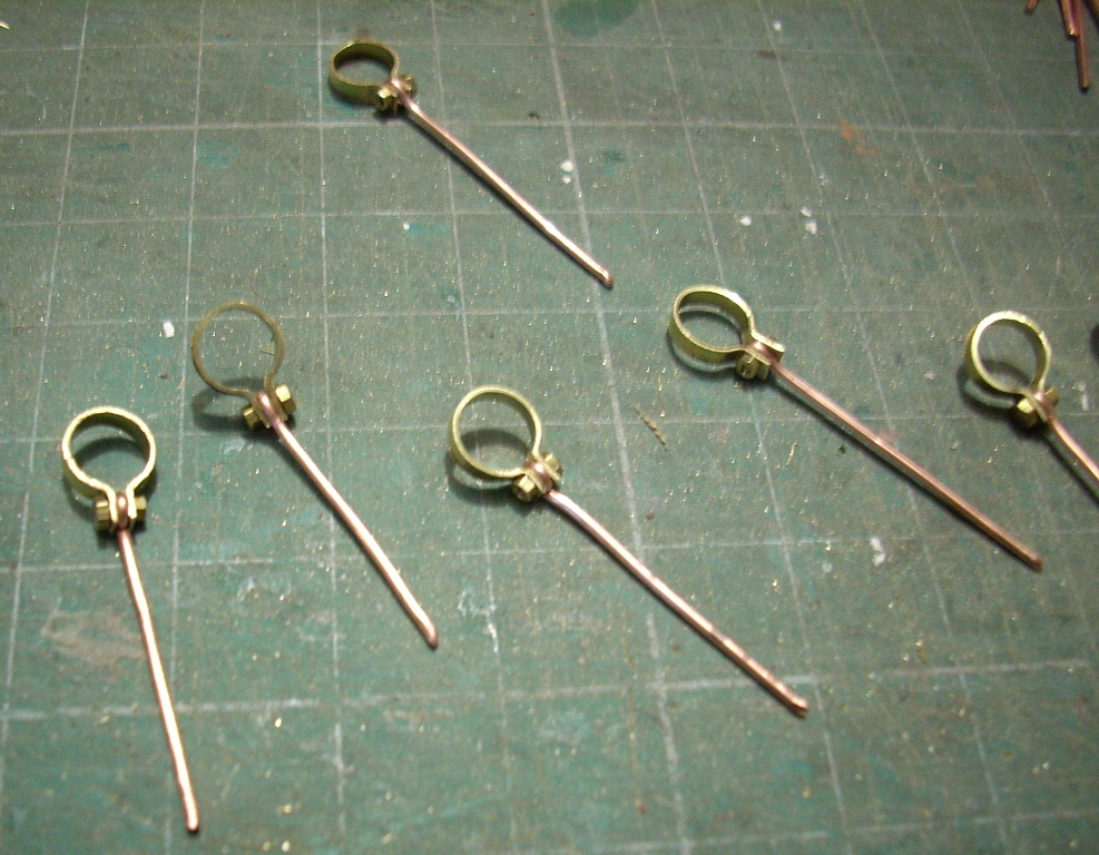 trwają prace nad okuciami jufersów ,obejma z blaszki 0,2mm, drut 0,8 mm i śrubki M1