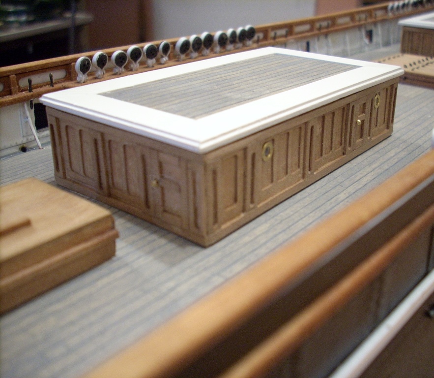 Śruby miały ok 1/2 cala,a nie jak w Twoim wykonaniu 84 mm /prawie jak rura kanalizacyjna/.Nakrętki jeszcze większe.Opaski jufersów masz szersze niż deski pokładu.Porównaj ze zdjęciem oryginału, 3 strona Twojej relacji.