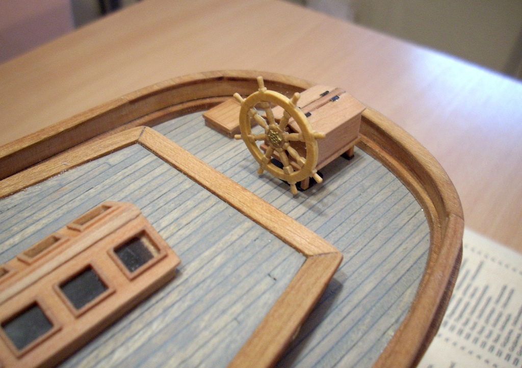 a tak wygląda zrobiony dziś ster. Koło sterowe zrobione jest z bukszpanu wygodniej było wytoczyć ramiona steru a skrzynia z mechanizmem z drewna gruszy