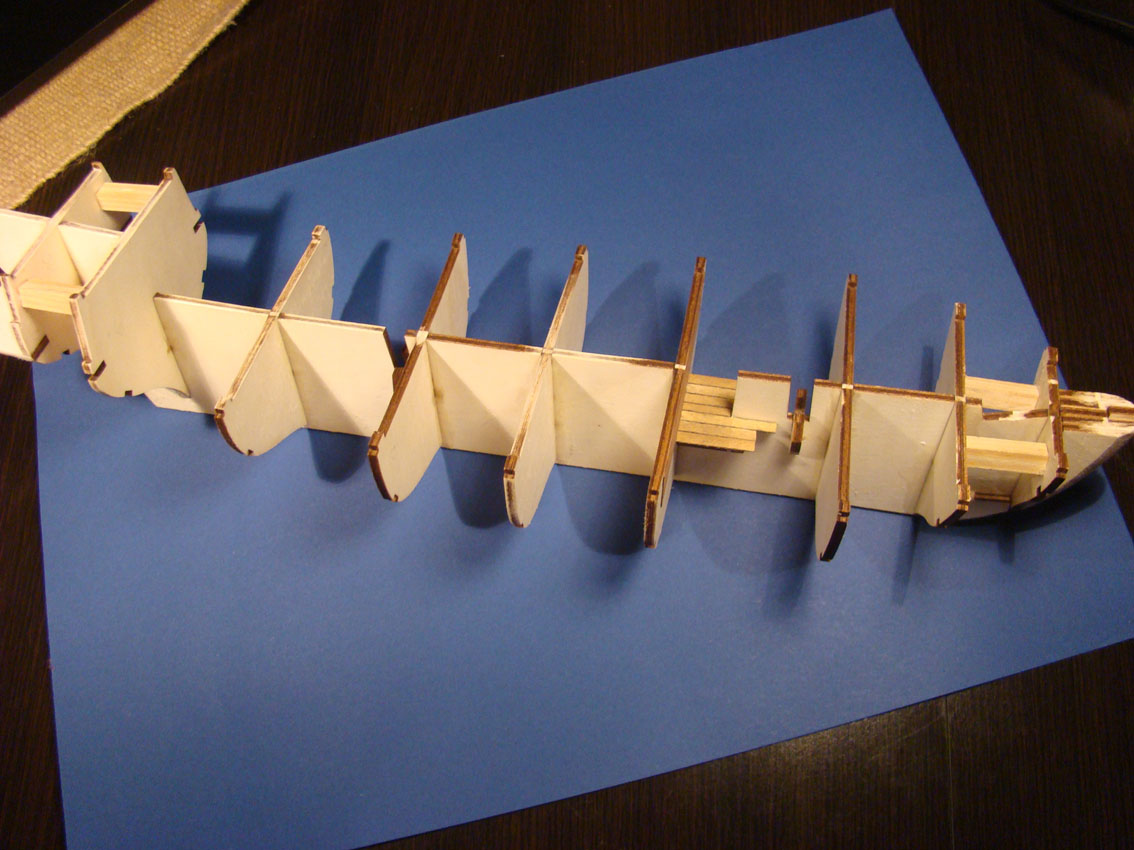 Wręgi już na swoich miejscach sukcesywnie wzmacniane czekają na usunięcie laserowego "czernidła" i przeszlifowanie do listwowania kadłuba