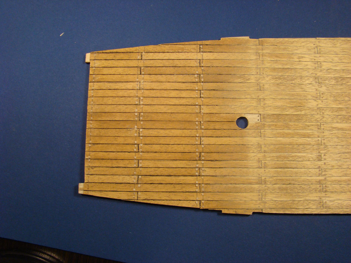 Kołkowanie pokładów. Wiertełko fi 0,5 i wykałaczki z jakiegoś liściastego drzewka i po zeszlifowaniu. Próby z odciśnięciem kołeczków igłą do strzykawek nie przypadły mi do gustu.