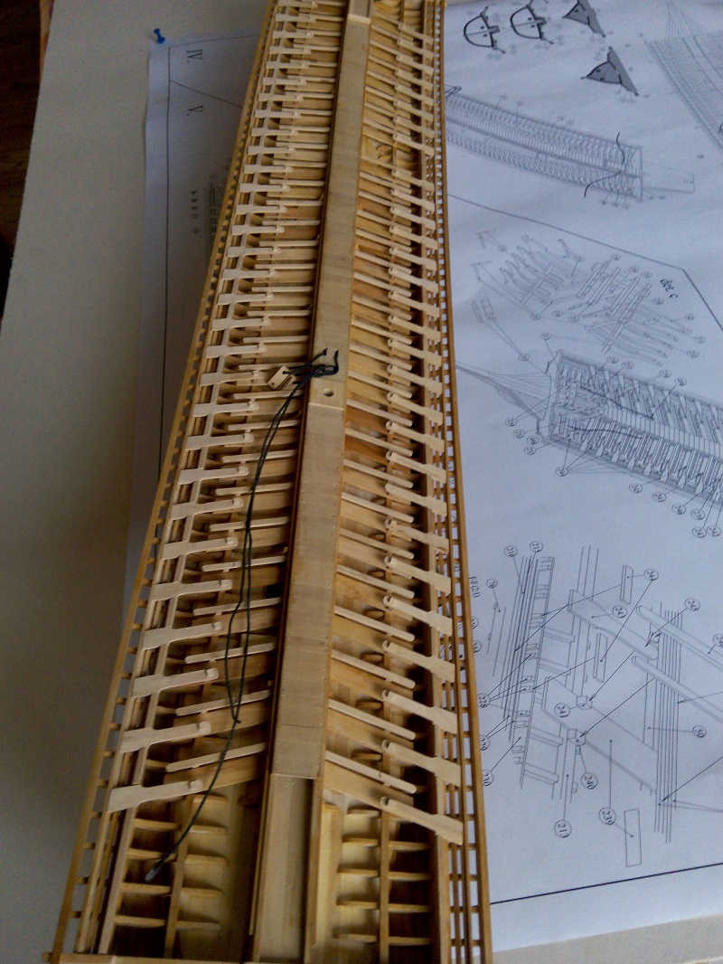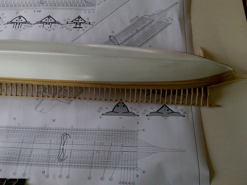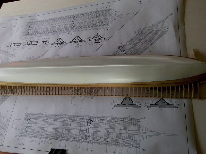 Witam prace nad dziobem ku końcowi jeszcze trochę kołkowania i biorę się za rufę to dopiero będzie wyzwanie. Pozdrawiam.