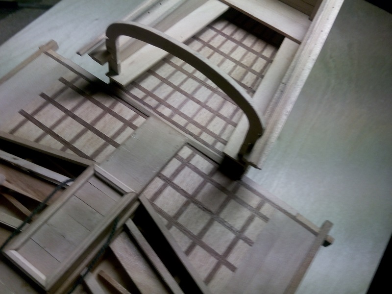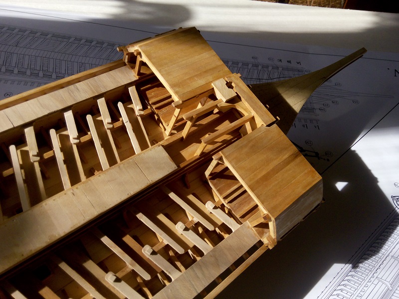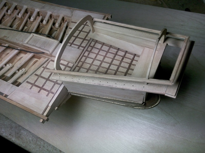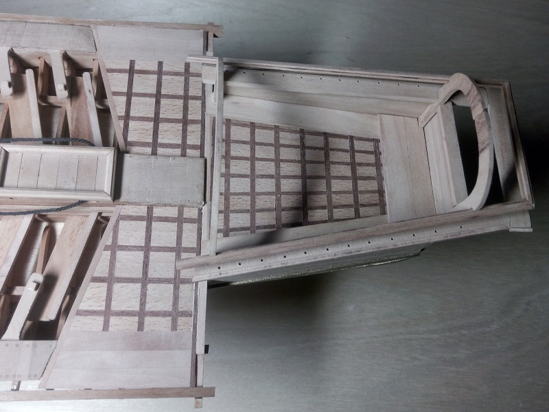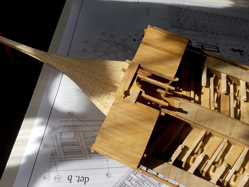 Prace nad rufą w toku ułożona podłoga, pasowanie poręczy oraz daszku a następnie będę montował tralki. Pozdrawiam.