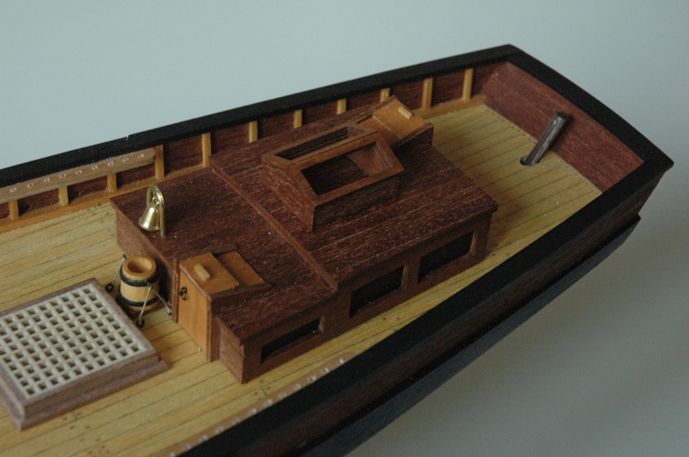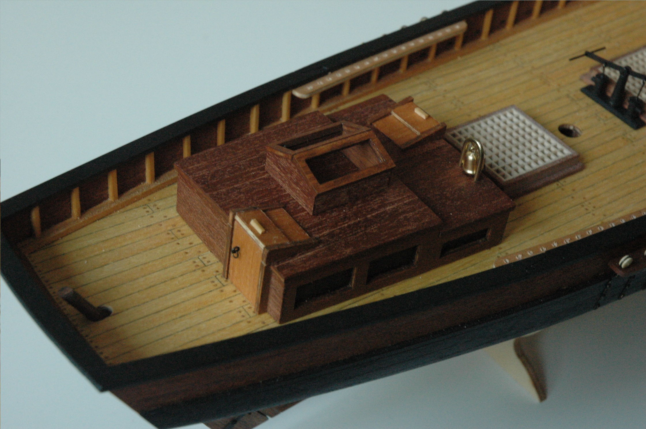 Witam, prace powoli idą na przód. Skończyłem wyposażenie pokładu. Przeszklenia w nadbudówce zrobiłem z nitki nasączonej klejem CA i rozpiętej na ponacinanej sztywnej karcie.