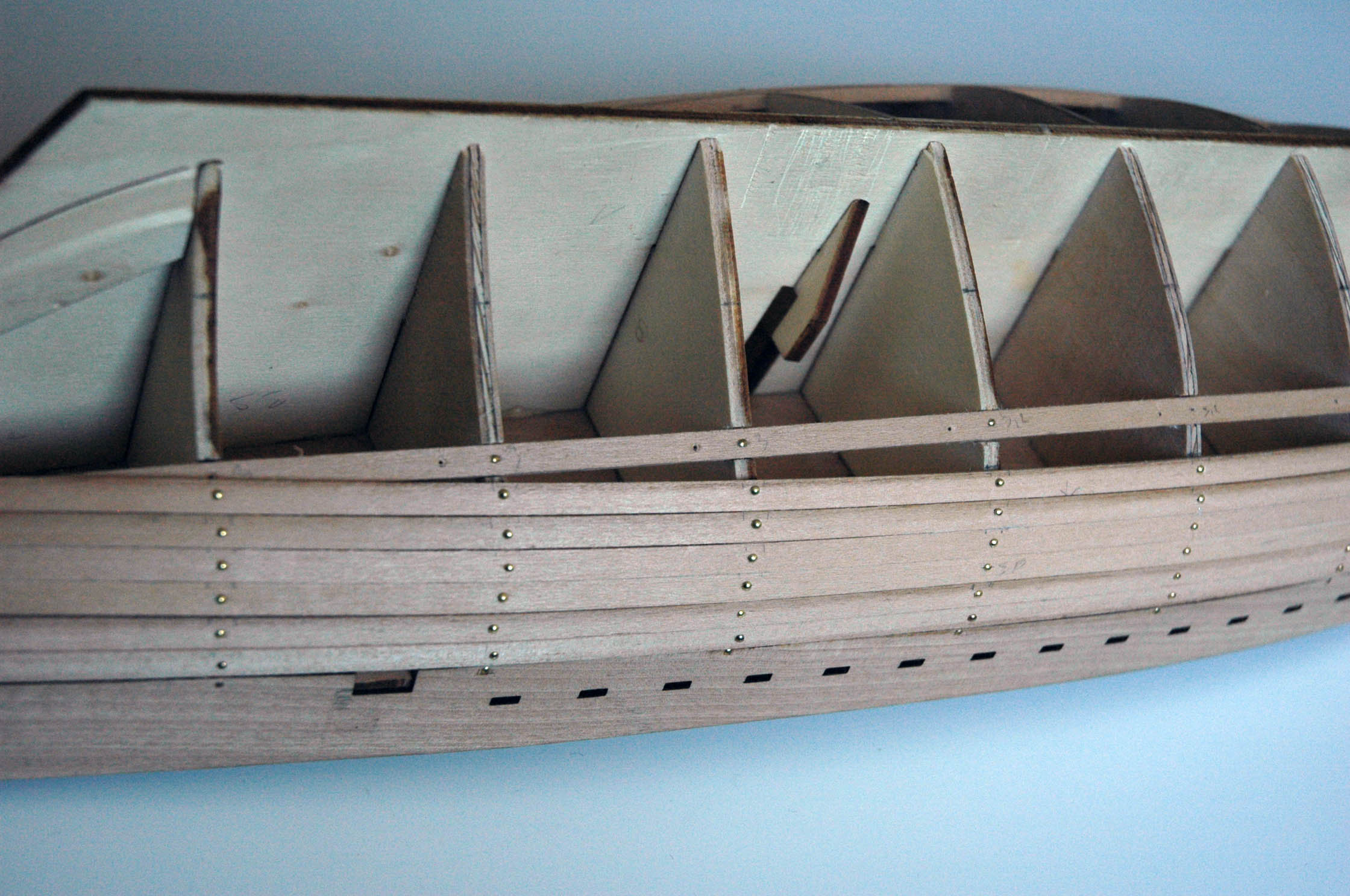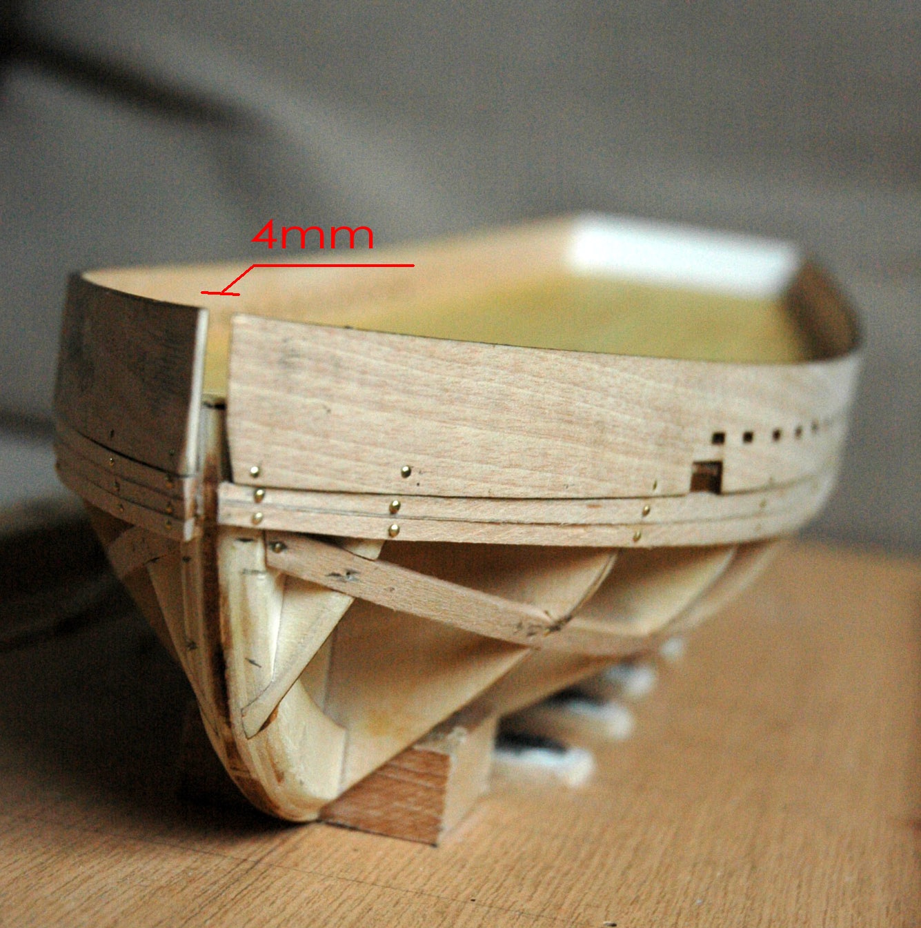 Przystąpiłem do dalszych prac, wykończenie burt i druga warstwa poszycia. Przy okazji odkryłem liczne błędy w instrukcji oraz zestawieniu elementów wydawnictwa (na szczęście w pudełku oprócz zestawienia elementów w języku angielskim z błędami było też zestawienie poprawne w języku włoskim).