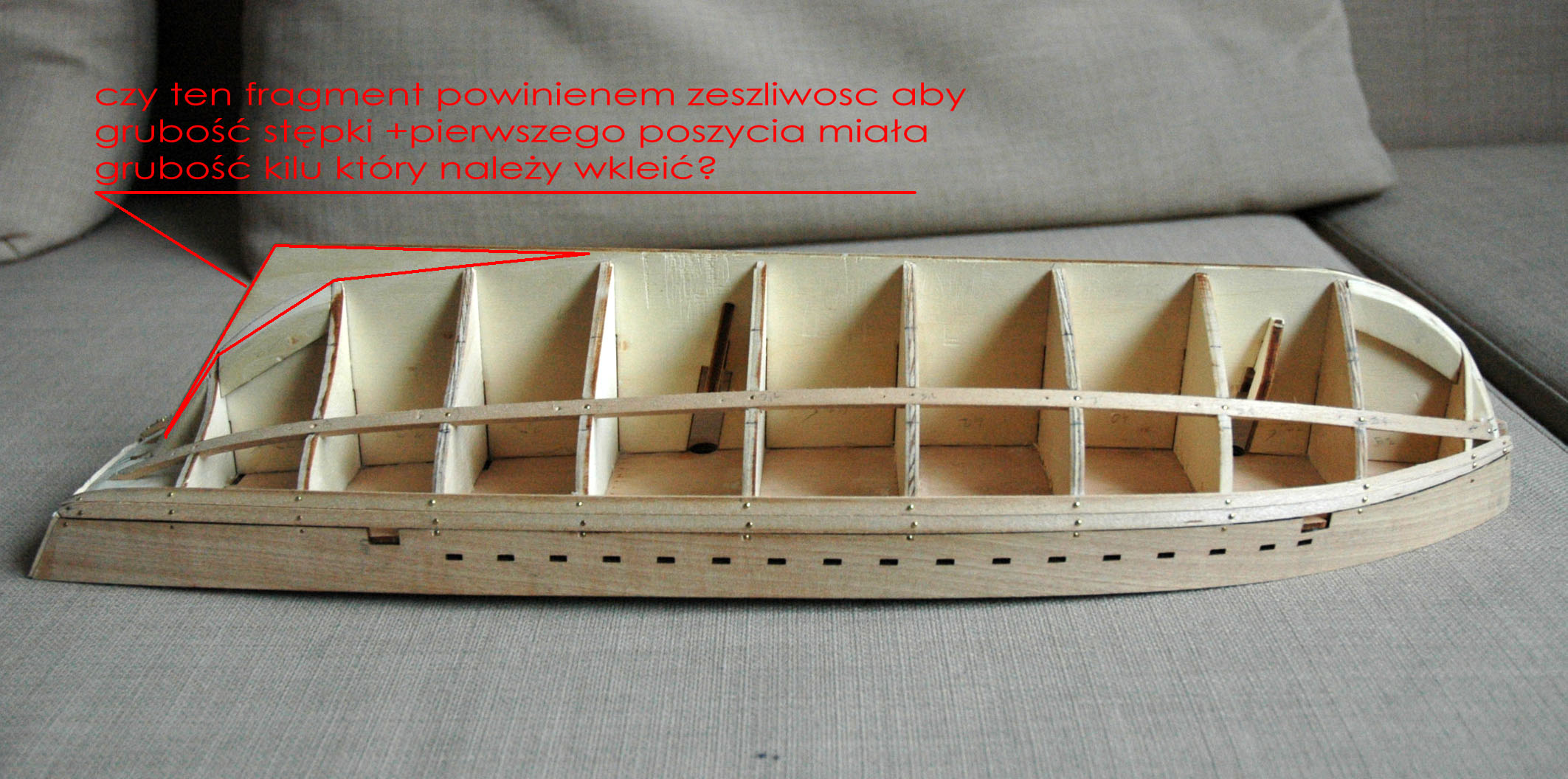 Zabrałem się za poszywanie. Starając się myśleć parę kroków do przodu chciałem się tu poradzić. Obserwując inne relacje widzę że kil jest wklejany na stępkę przed poszywaniem i listewki poszycia docina się i dopasowuje do przyklejonego kilu. W instrukcji mojego modelu jest napisane aby pozostawić szczelinę w poszyciu szerokości 4mm ( dodam że kil jest wycięty w listwy gr. 5mm ) wykonać obie warstwy poszycia i dopiero wkleić kil. Może czegoś nie rozumiem ze wydaje mi się to bezsensu.