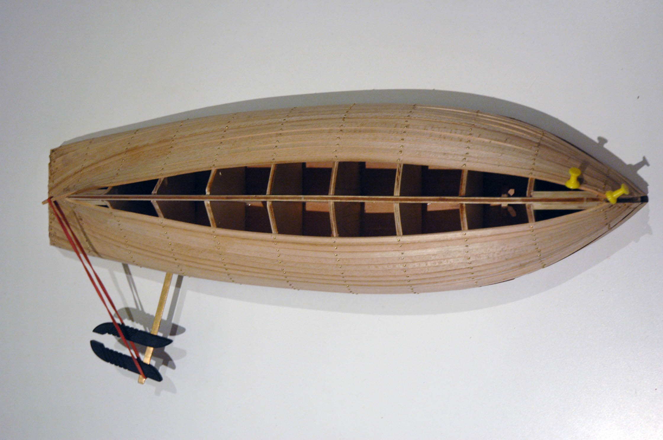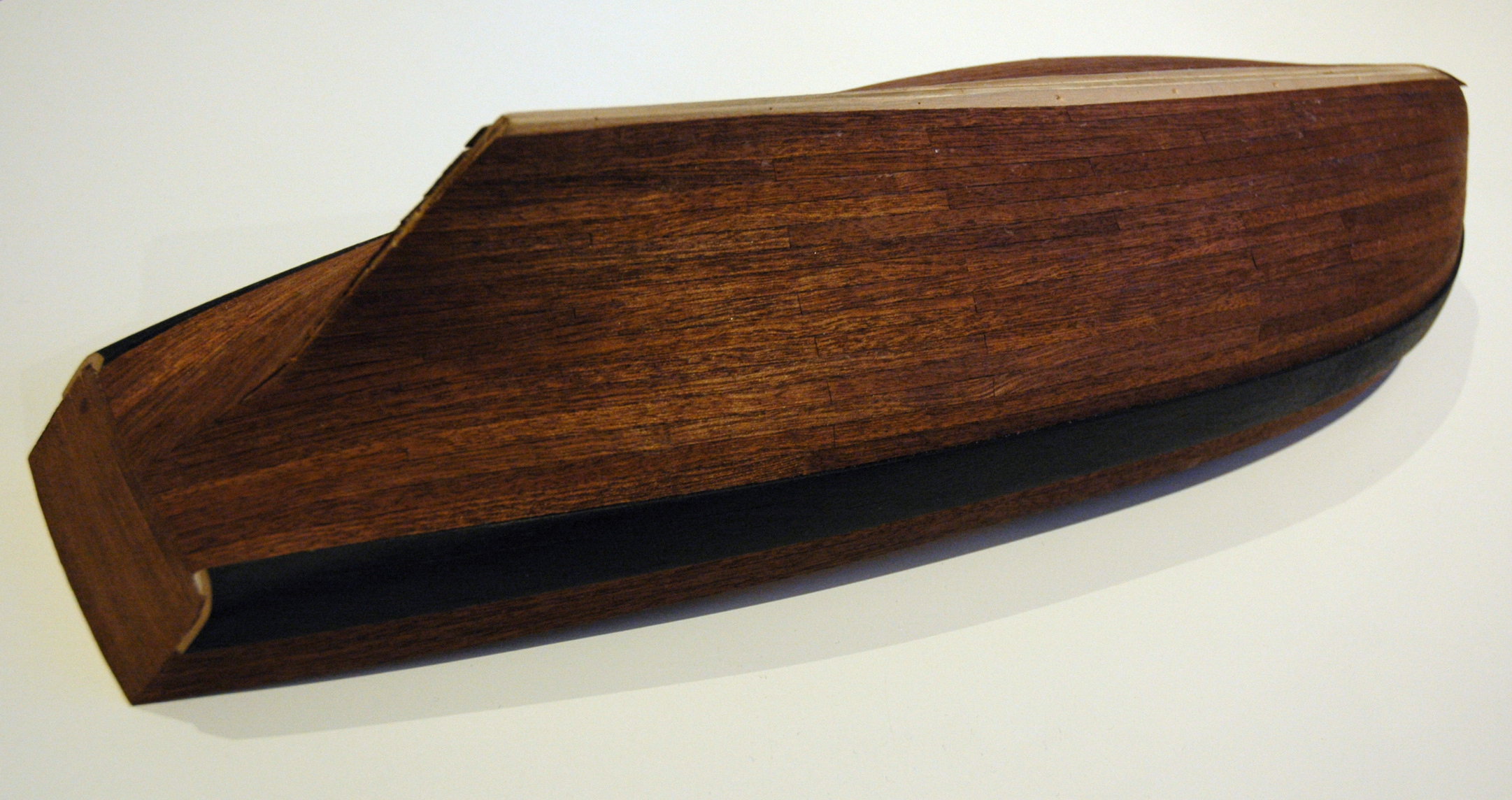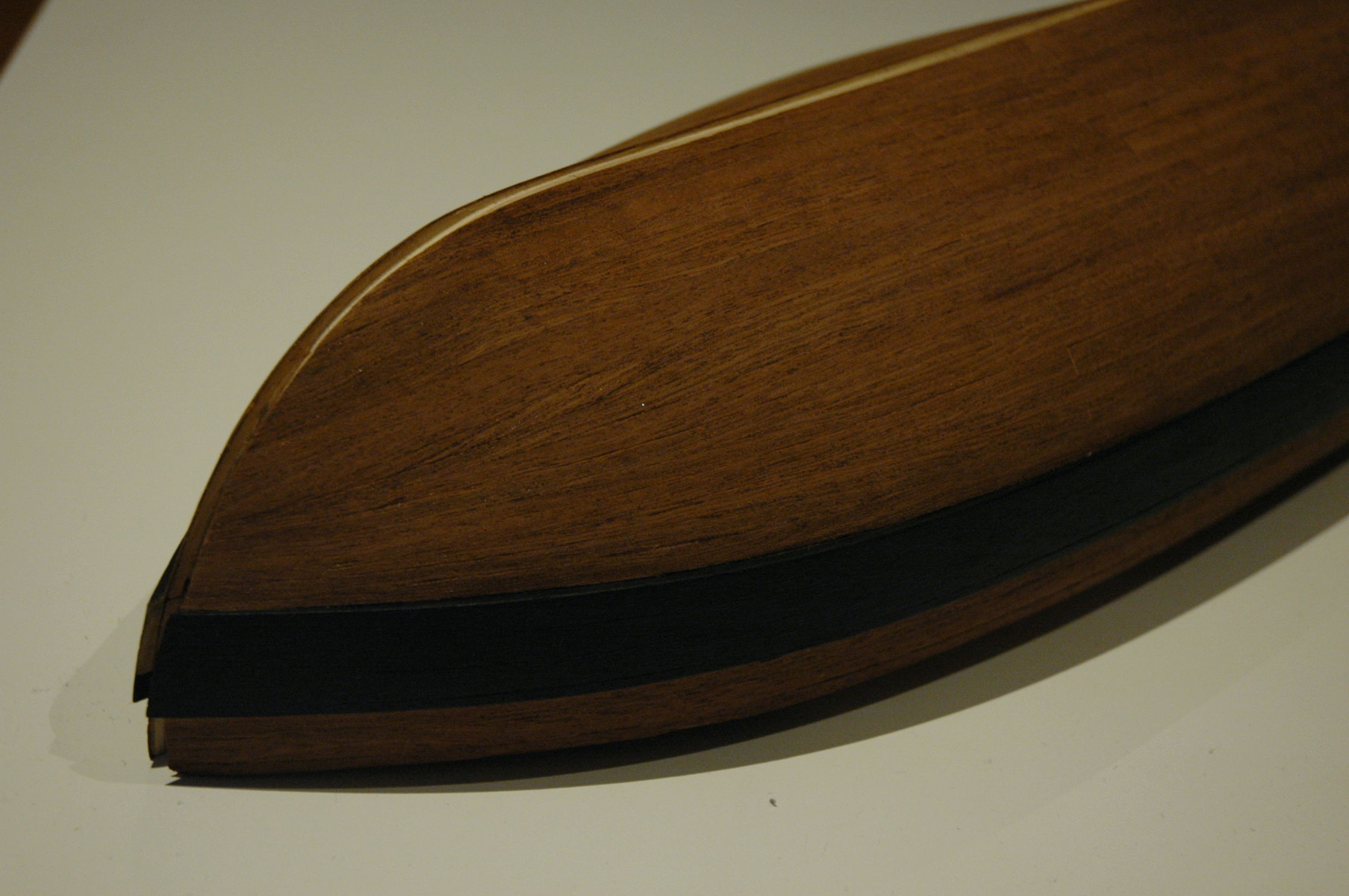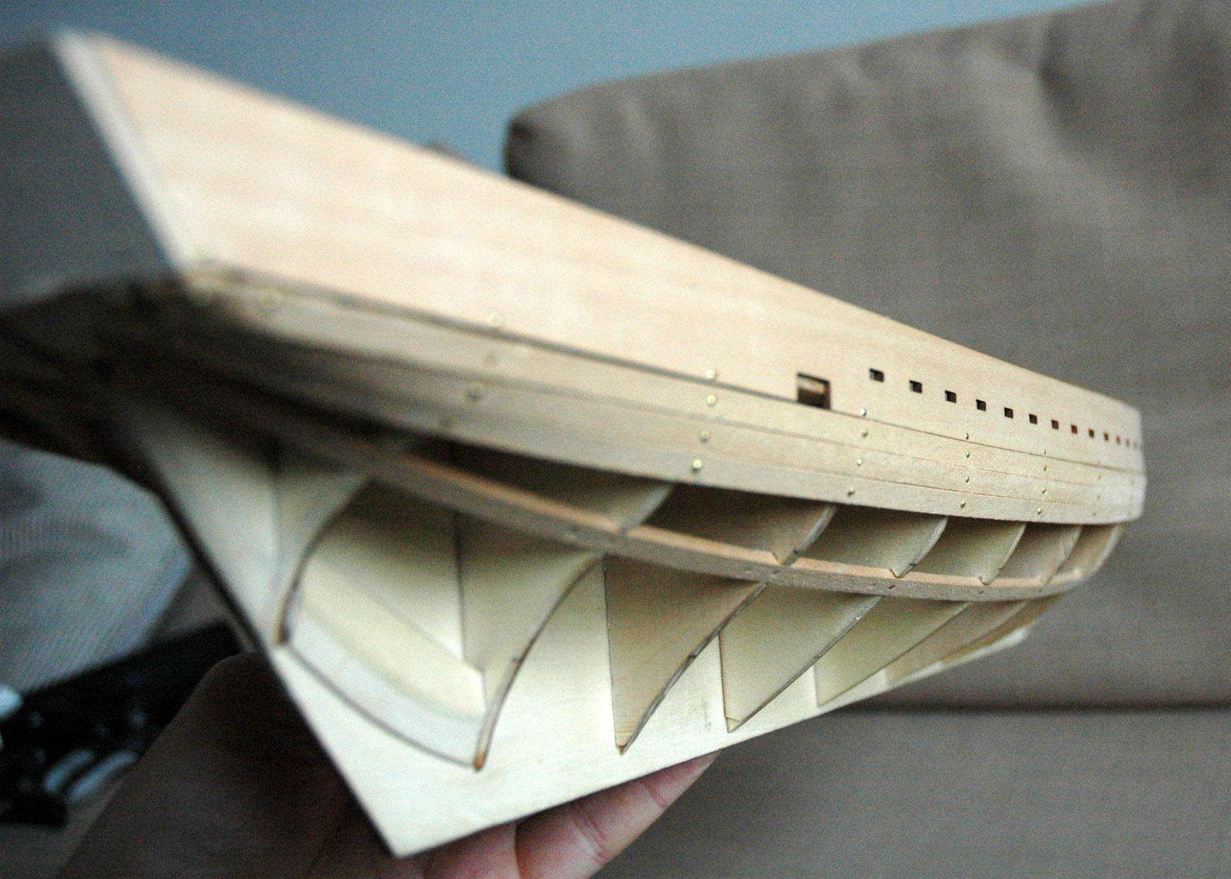 Udało mi się skończyć pierwszą warstwę deskowania. Teraz będę szlifował kadłub i dopsaowywał szczelinę do zamocowania kilu.