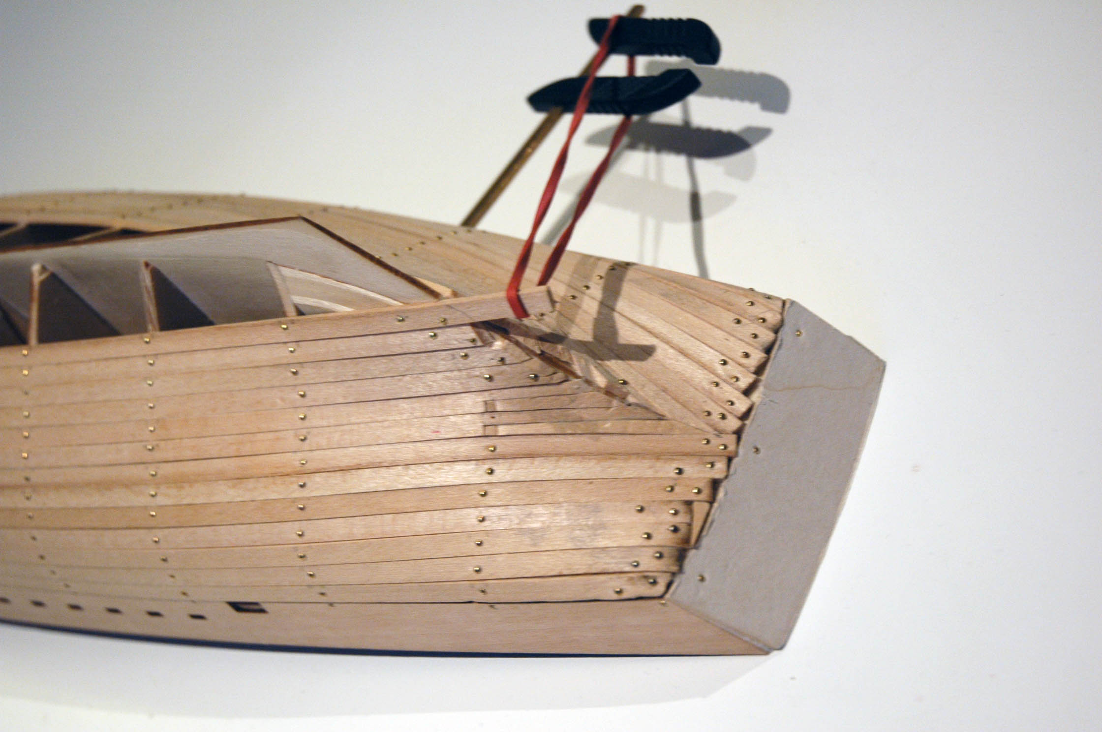 Ad. 1 - Jeśli zdążasz do wierności z oryginalnymi praktykami szkutniczymi (ale chyba niekoniecznie, bo wtedy nie poszywałbys kadłuba podwójnie), to okucia steru powinny być raczej czarne, zmienione czasem i wodą, ale w sumie to jest tylko model i Ty jesteś jego budowniczym, więc decyzja należy do Ciebie.