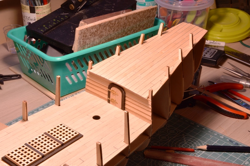 Na powyższej fotce pociągnąłem nawet dwie planki daleko do rufy. Tak mi dobrze szło. I zaczęły się kłopoty :mrgreen: Nie miałem na rufie miejsca dla następnych planek. Rozpoczęła się walka.