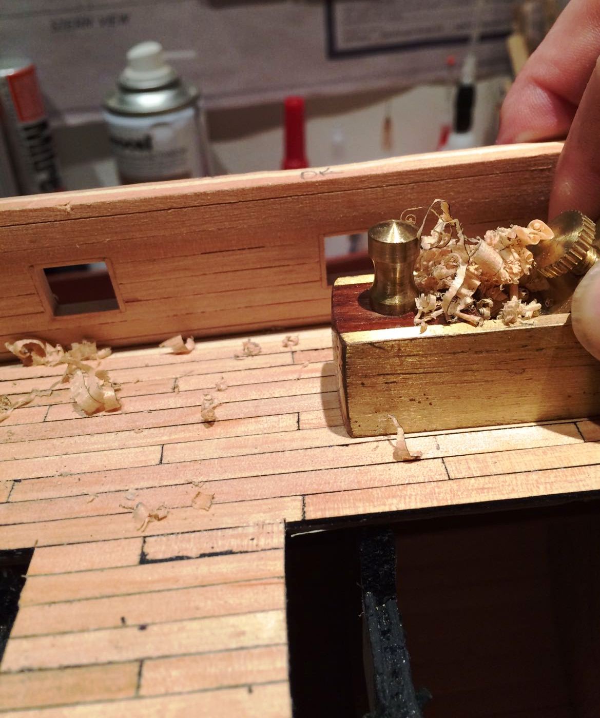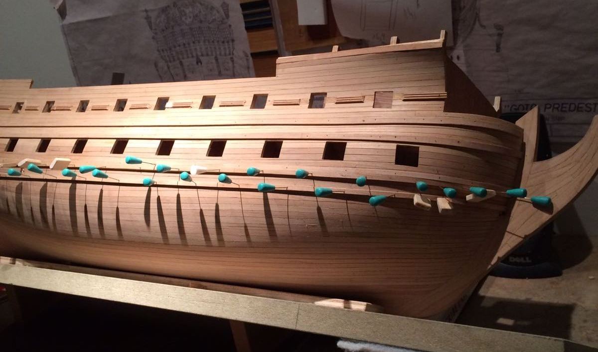 Po zakończeniu odbojnic zabrałem się za wykonanie furt działowych i pokładu.