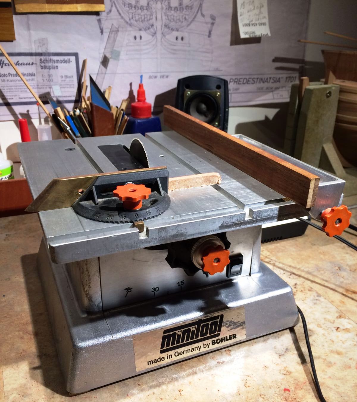 Ta piłka jest mniejsza od Proxxona, nadaje się do drobnych cięć. Wysokość cięcia 15 mm, ale u mnie frez piłkowy 63 mm wystaje 19 mm. Można też dokupić tarczę do szlifowania. Podchodzi też futerko Proxxona, ale ja tego nie używam. Kiedyś produkowana przez firmę Bohler, teraz przejął Kaleas. Solidne wykonanie, bardzo dokładna, może służyć wiele lat. Ja mam ją 8 lat, zużyłem 7 pasków zębatych, i raz spaliłem silnik przy cięciu mahoniu 12mm . Więcej parametrów tutaj: