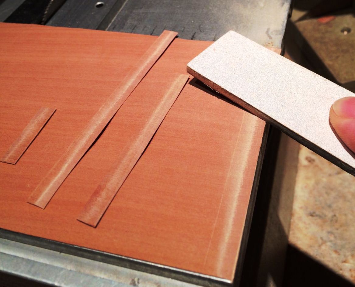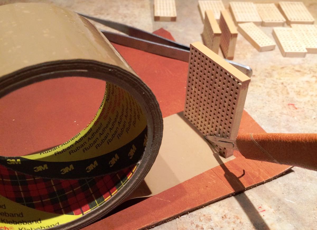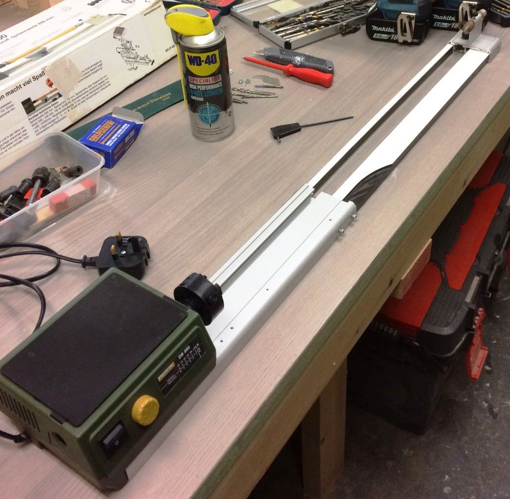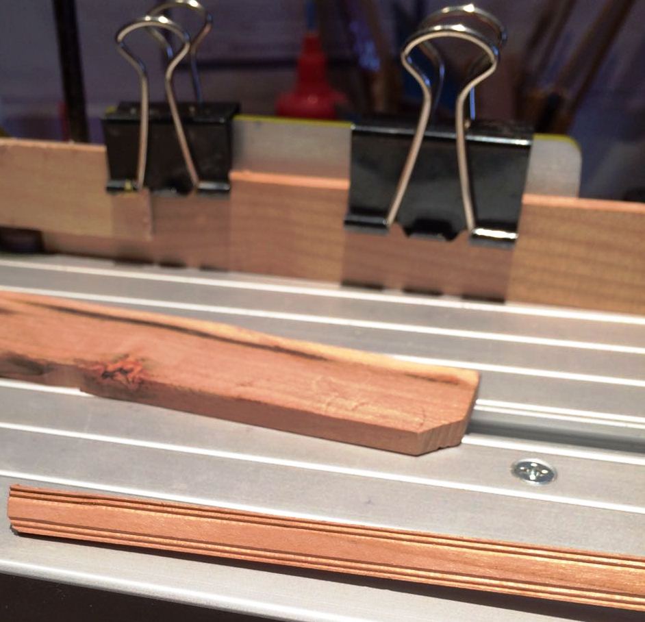 Liswy o przekroju 1,8 x 6 i 1,5 x 5,8 postanowiłem wzbogacić o frezy ozdobne, wzorując się na zdjęciach repliki. W tym celu posłużyłem się Proxxonem MP 400. Frezy kształtowe naciąłem tarczą diamentową.
