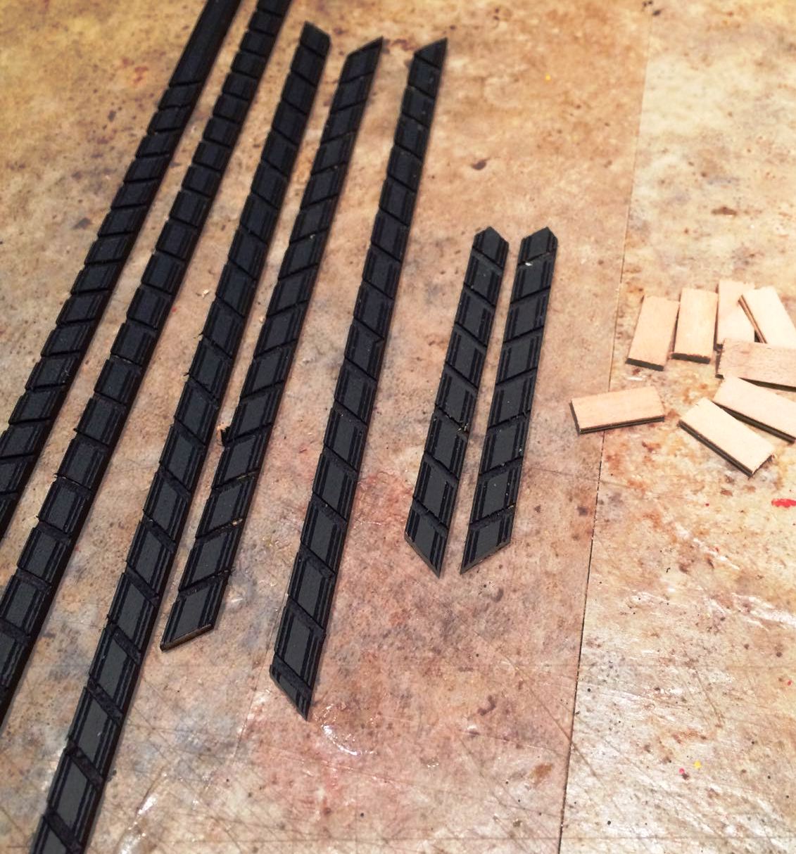 Po poprawieniu plankowania kadłuba zabrałem się za gretingi.