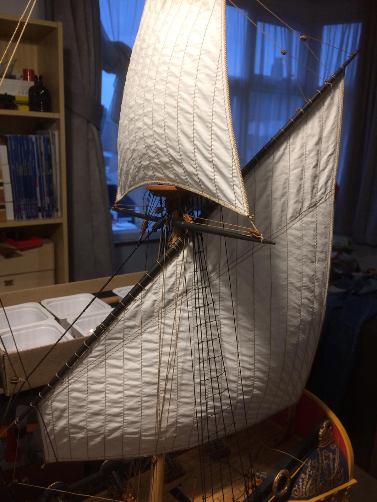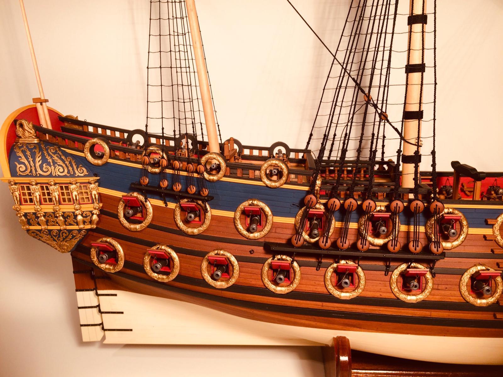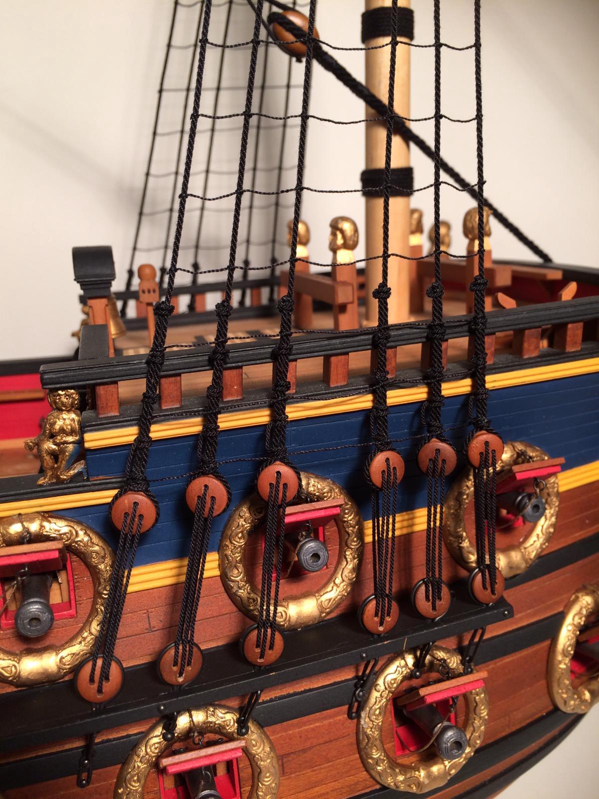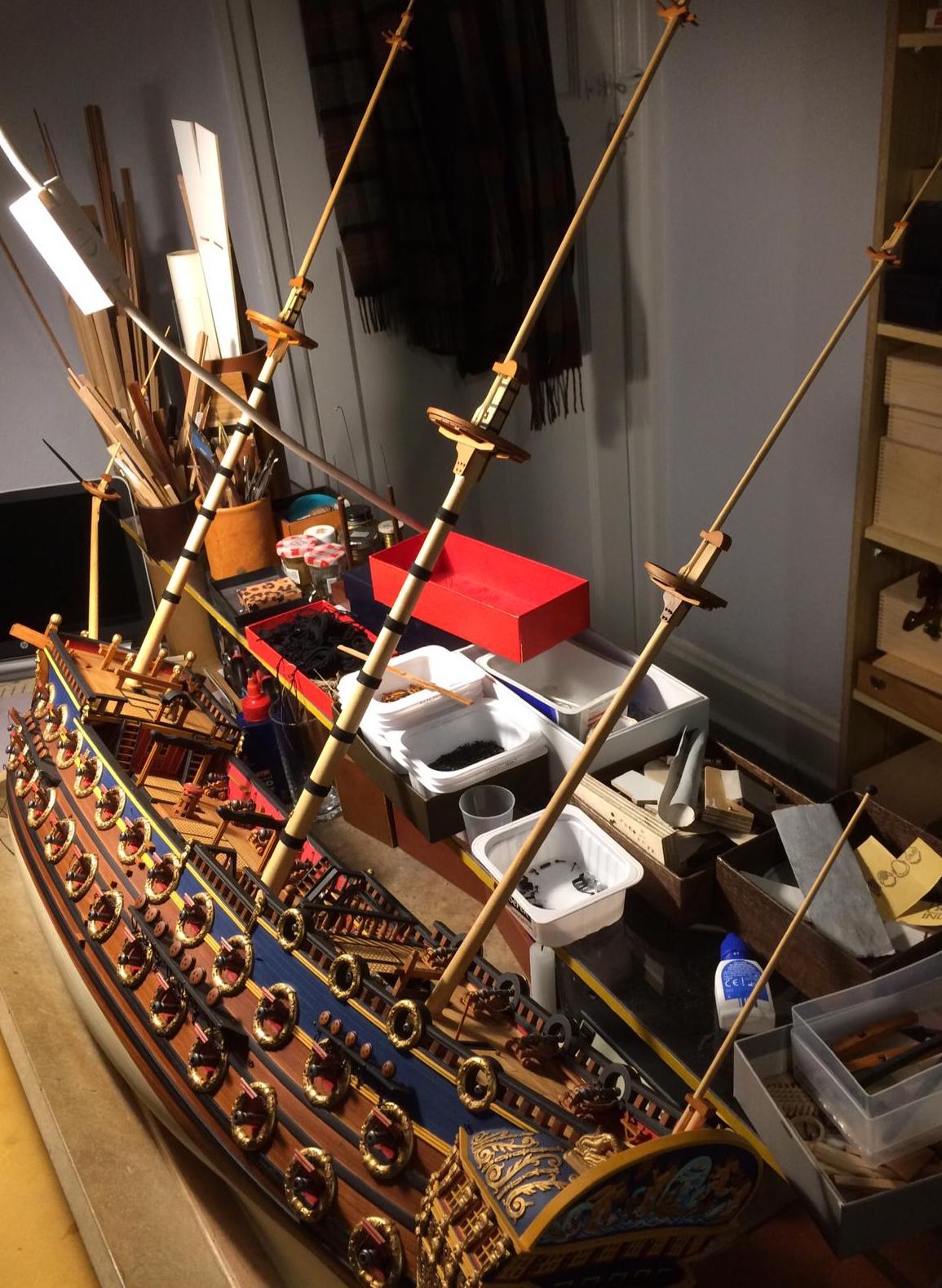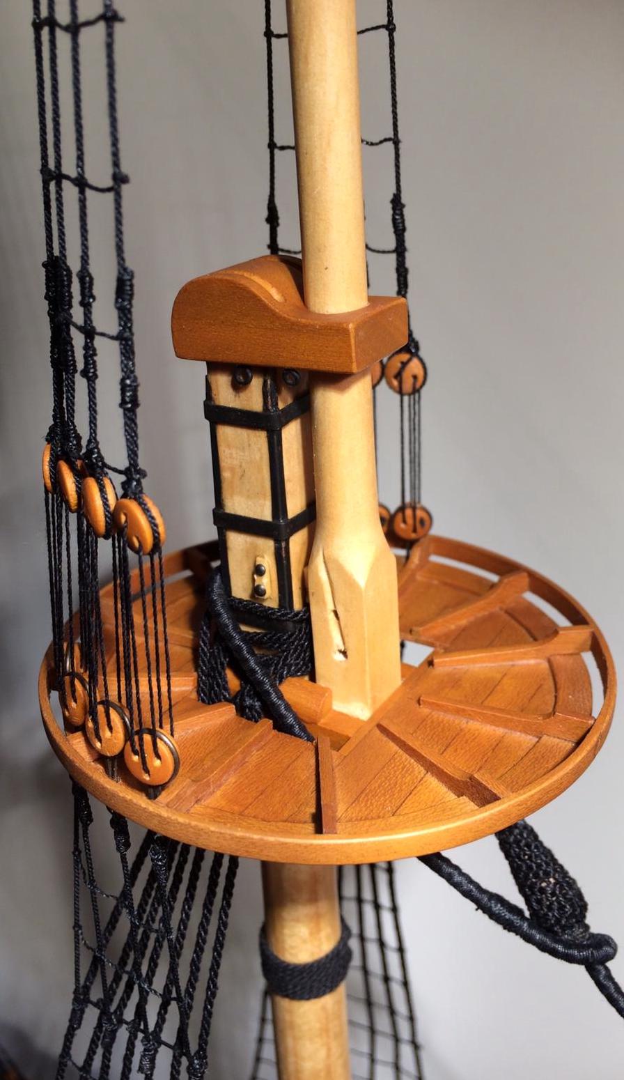 Przepięknie .Widać ze masz spory park maszynowy .Proponowałbym Ci przykręcić model do podstawki długą śrubą do stępki .Ja tak robię i mam pewność ze przy chwytaniu podstawki model nie wypadnie .Byłem świadkiem kiedy na mistrzostwach próbowano model przestawić i się zsunął .Uległ uszkodzeniu .Szkoda by było żeby tak pięknie wykonany model się zniszczył.Gratuluję precyzji .R