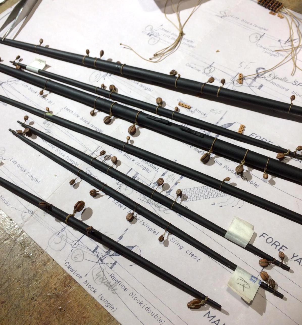 Przywiązałem bloczki do rei, a także raksloty.