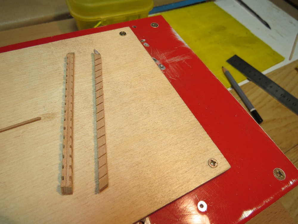 1- Najpierw przygotowujesz obie bocznice, potem stopnie Twych drabin/schodow.