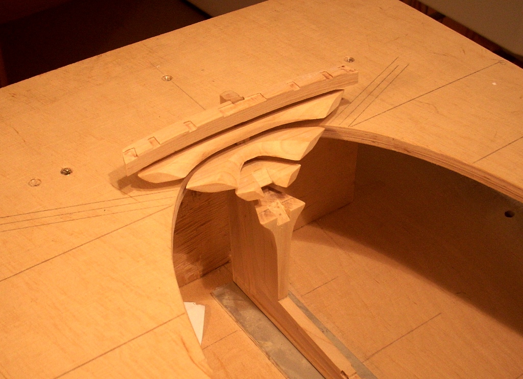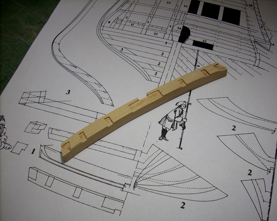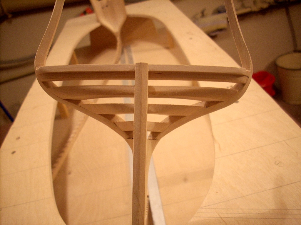 kontynuacja rufy, elementy na razie poskładane górna belka musi byc jeszcze wygładzona mieć doszlifowane brzegi po skosie
