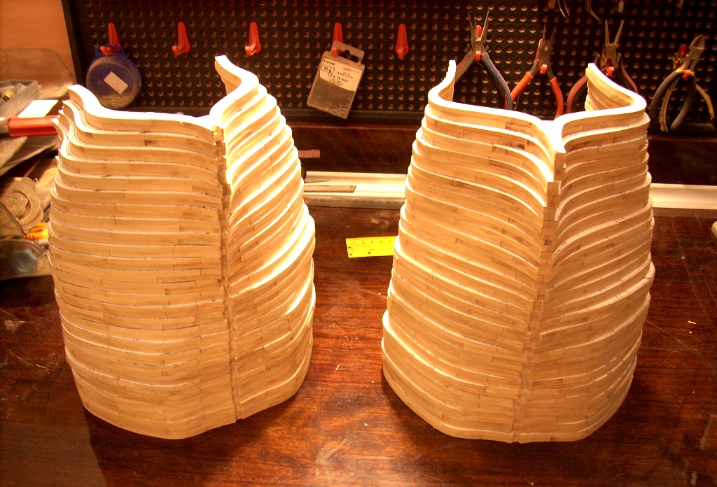 wstępnie wszystkie wręgi przygotowane . Oszlifowane po zewnętrznej linii i posklejane czekają na obsadzanie w stępce