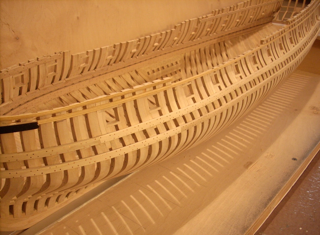 No tak, teraz wszystko jest jasne! Zasugerowalem sie tym planikiem wnetrza kadluba, ktory zamiesciles, i szukalem na zdjeciach tych diagonal riders (nie otworzywszy wprzody ich w pelnym formacie), i nie widzac ich, wydedukowalem, ze zrobiles je kladac je bezposrednio na wregi - stad nie widzialem tego skosnego ich przebiegu. Pomyslalem, ze szkoda by bylo, gdyby taki fantastyczny model (fregaty sa moimi ulubionymi jednostkami) byl zbudowany z takim bledem... Ale teraz wszystko jest cacy! Gratulacje jeszcze raz i zycze dalszej zabawy z modelem i satysfakcji podczas budowy!!!
