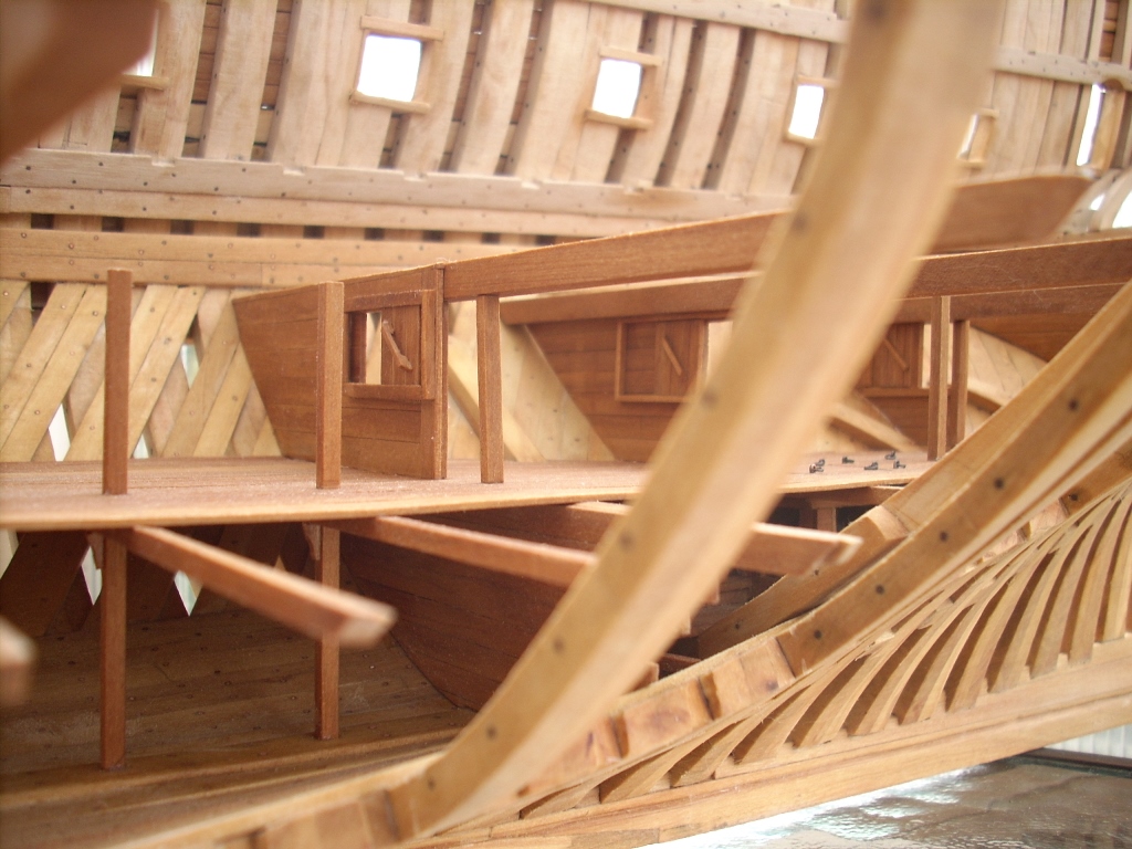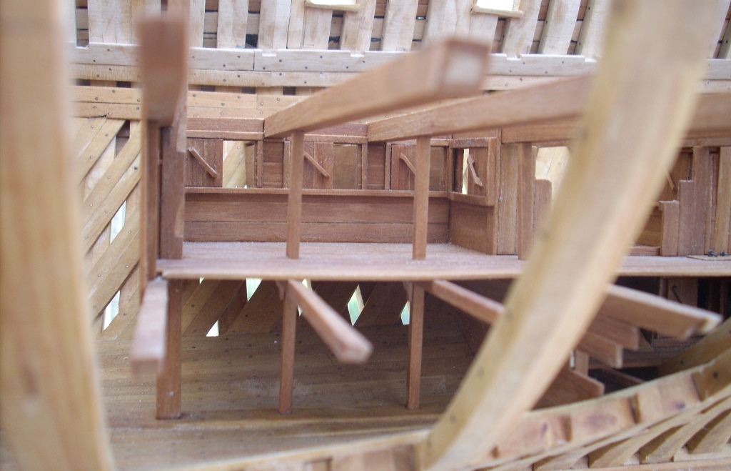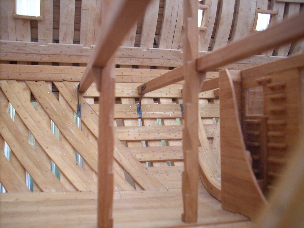 Ja trochę żałuję, że nie porobiłem takich wycięć w jednej burcie, by lepiej uwidocznić wnętrze kadluba w mym modelu i wszystkie tam detale, bo przez szpary między wręgami i przez częsciowo poszyte pokłady widoczność w głąb jest dość ograniczona. A szkoda, bo pracy tam było mnóstwo!