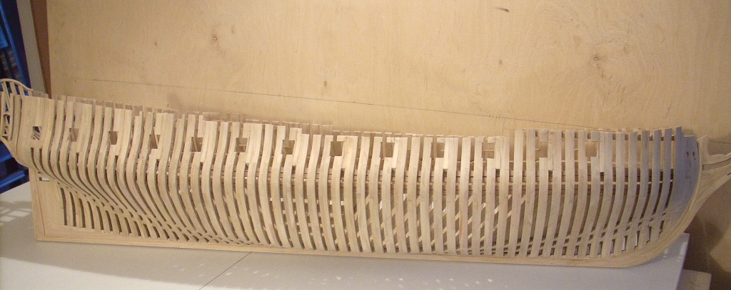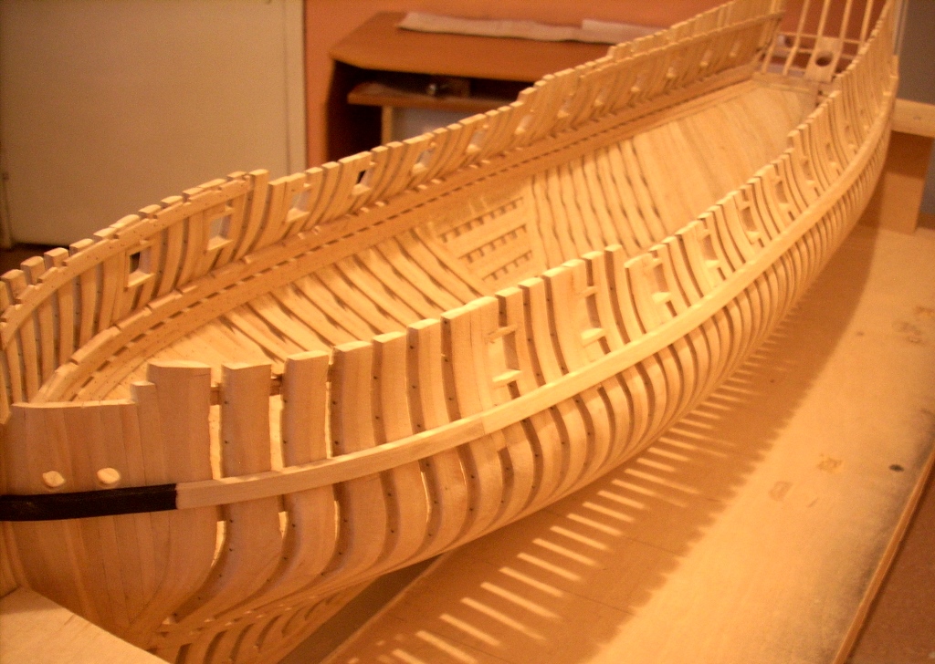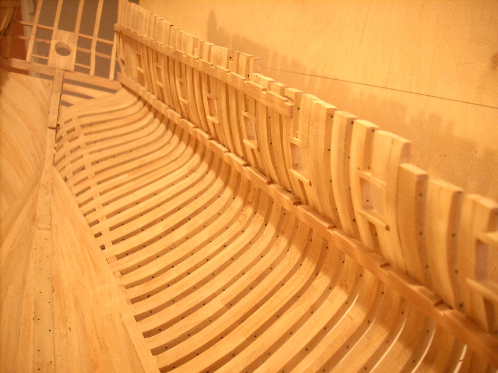 No tak, teraz wszystko jest jasne! Zasugerowalem sie tym planikiem wnetrza kadluba, ktory zamiesciles, i szukalem na zdjeciach tych diagonal riders (nie otworzywszy wprzody ich w pelnym formacie), i nie widzac ich, wydedukowalem, ze zrobiles je kladac je bezposrednio na wregi - stad nie widzialem tego skosnego ich przebiegu. Pomyslalem, ze szkoda by bylo, gdyby taki fantastyczny model (fregaty sa moimi ulubionymi jednostkami) byl zbudowany z takim bledem... Ale teraz wszystko jest cacy! Gratulacje jeszcze raz i zycze dalszej zabawy z modelem i satysfakcji podczas budowy!!!