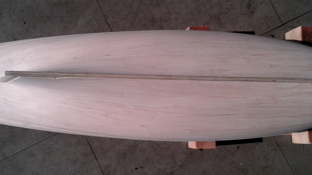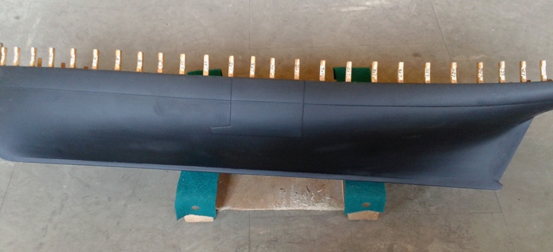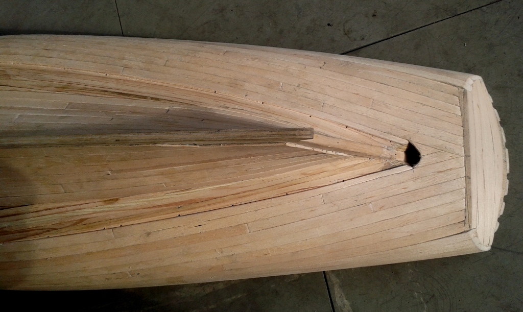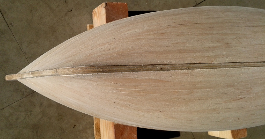 Jako że zapowiadałem iż Grom jest priorytetem więc kolejne fotki i narazie pauza. Poszycie kadłuba gotowe i wstępnie przeszlifowane, teraz czas na sezonowanie. Z doświadczenia wiem że drewno pracuje wiec czekanie na ewentualne pęknięcia i poprawki.