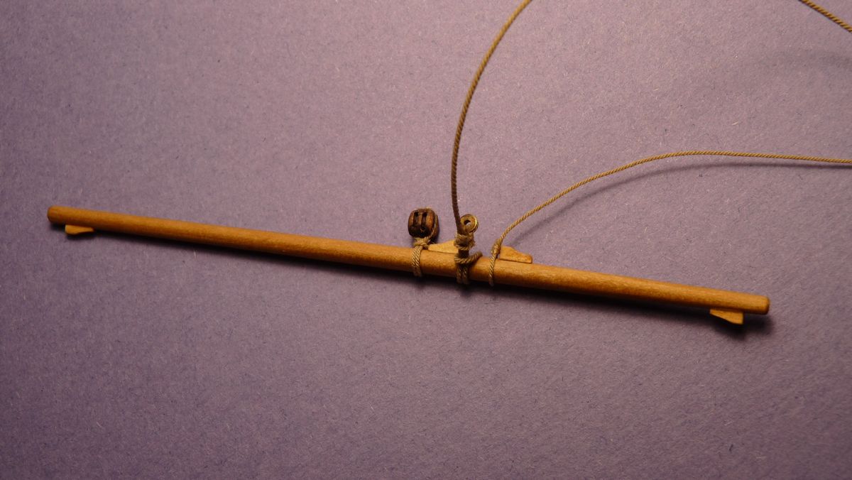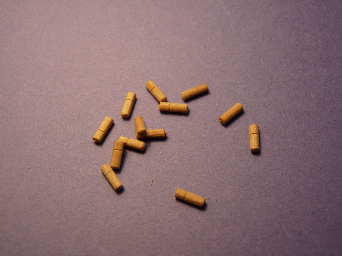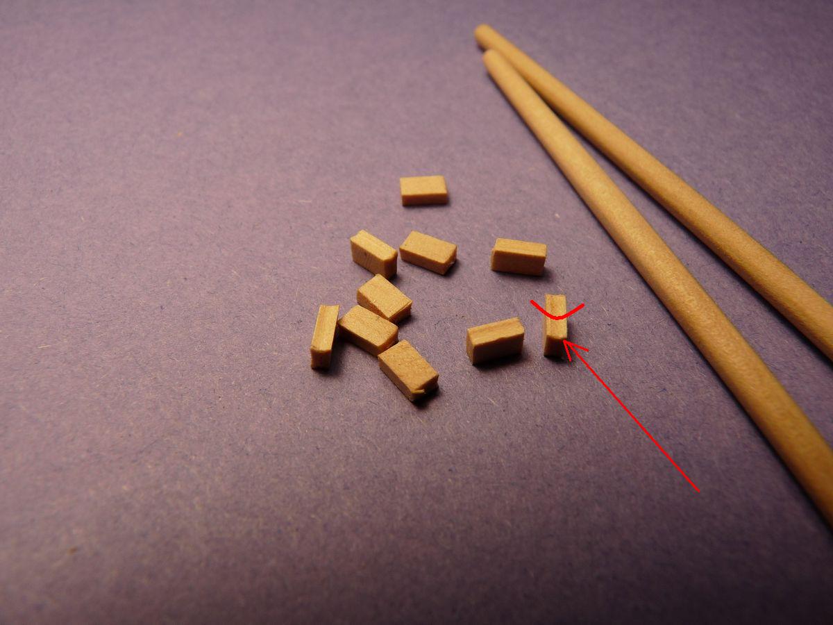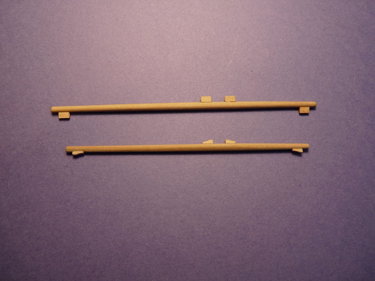 Te kołeczki wypiłowałem na półokrągło żeby dobrze przylegały po przyklejeniu do rei.