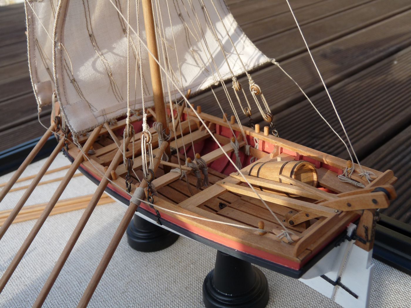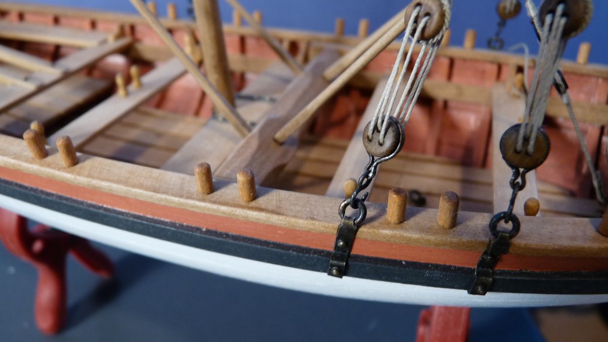 „Proponuję jednakże nie kłaść tej szalupy na pokładzie, a zamocować ją na podstawie obok modelu. Oczywiście w pełnym rynsztunku.”