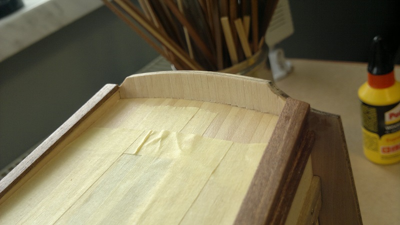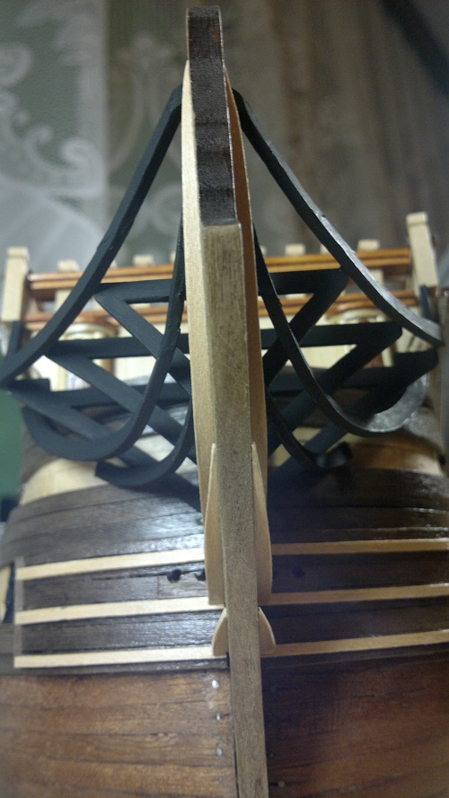 Analogicznie jak główny pokład wykonałem listewkowanie rufowej części.