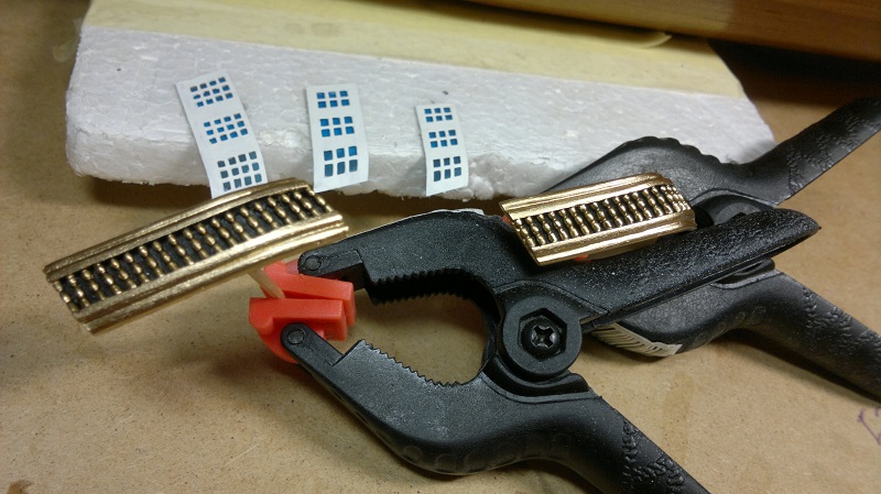 Delikatnie wciskałem bolce dział do otworów w okienkach.