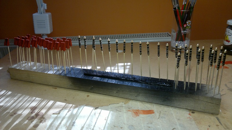 Kolejną bardzo żmudną rzeczą były bloczki szpilki z oczkami i wiązanie tego wszystkiego.