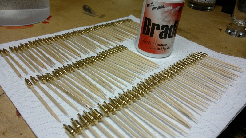 Lufy czyste i odtłuszczone przygotowane do mojego pierwszego w życiu czernienia mosiądzu.